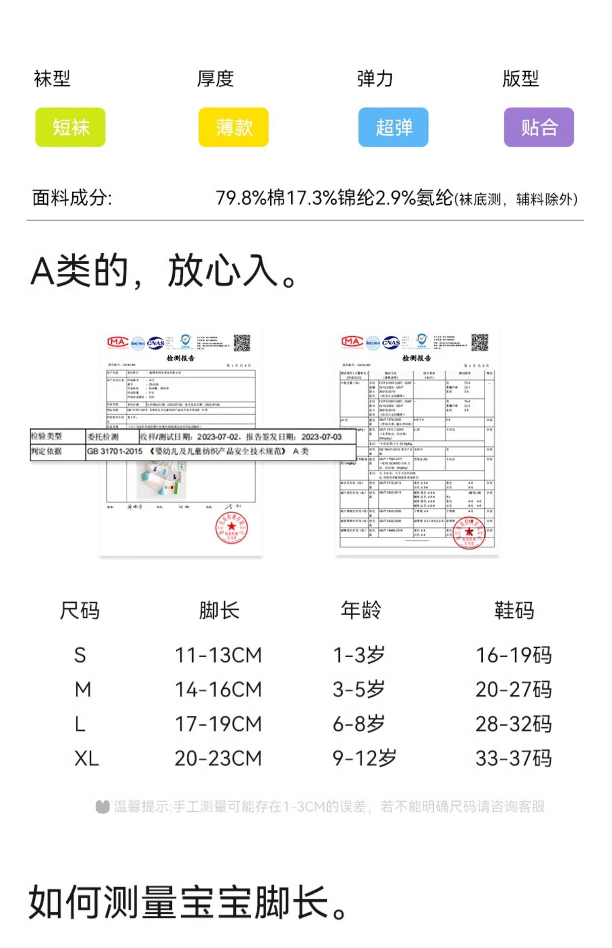 • 3~5세 권장 발 길이는 13~15CM [신발 사이즈 19~25] [내구성 및 보풀 방지]