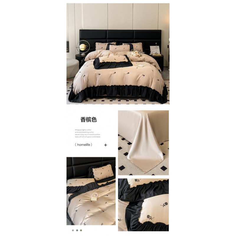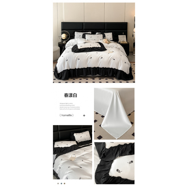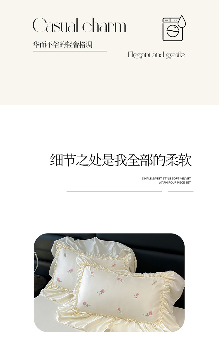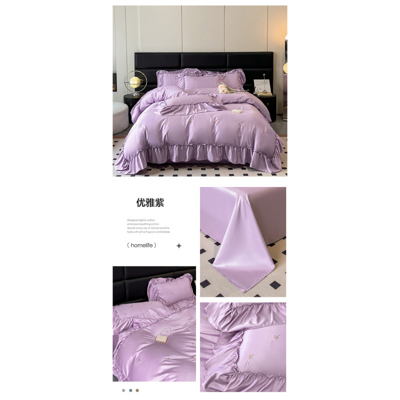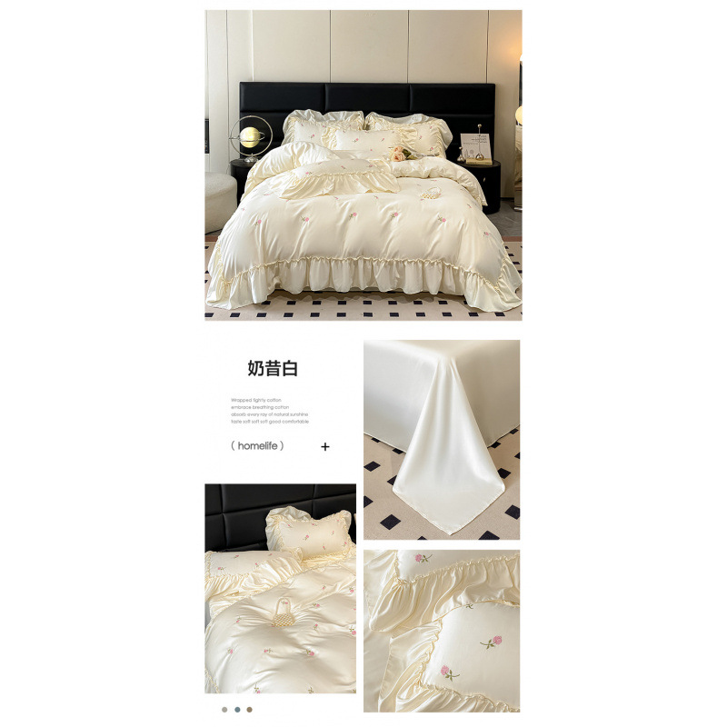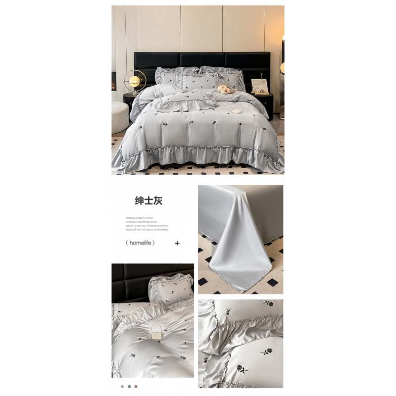 공주풍 워싱 실크 4피스 여름 아이스 실크 쿨 시트, 이불 커버, 매트리스 커버, 여름 알몸 수면 침구스토어 가기