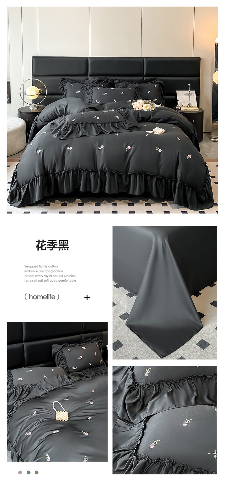 공주풍 워싱 실크 4피스 여름 아이스 실크 쿨 시트, 이불 커버, 매트리스 커버, 여름 알몸 수면 침구