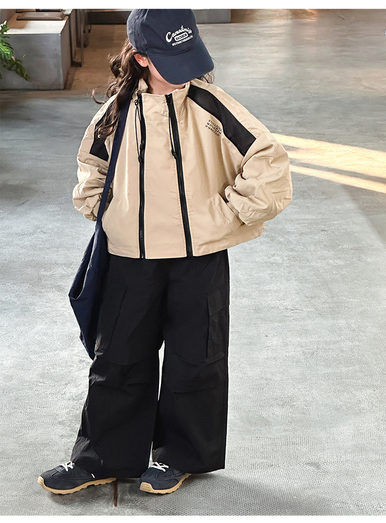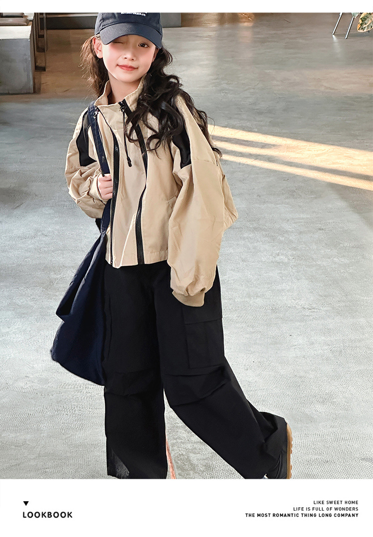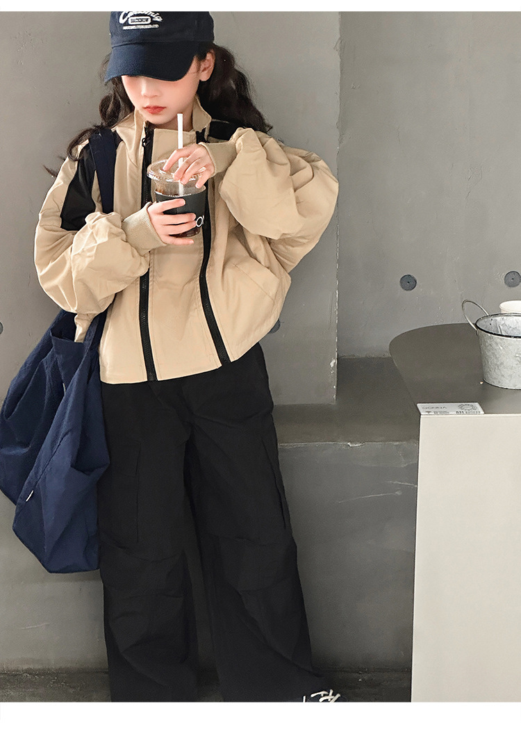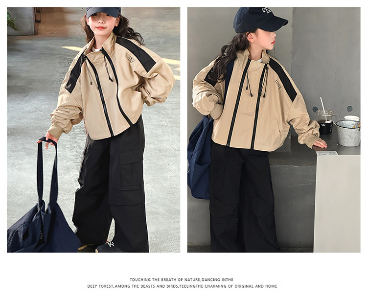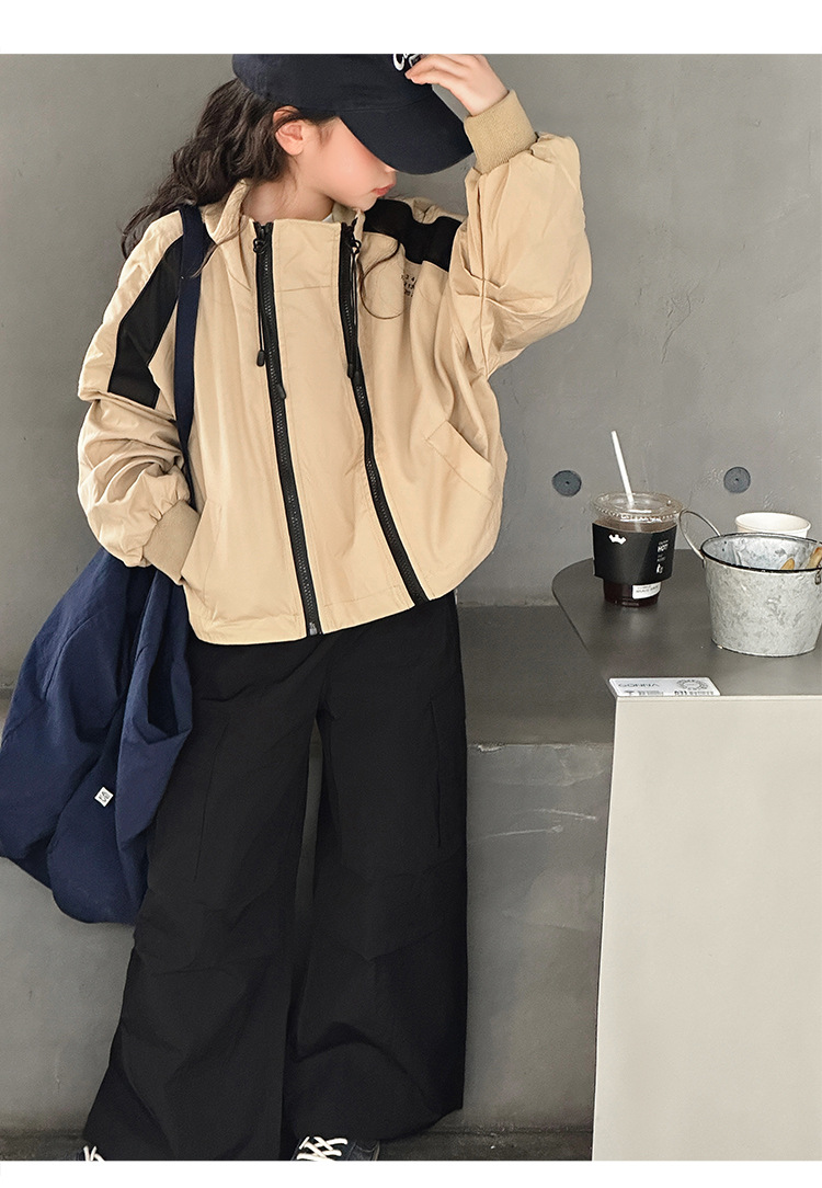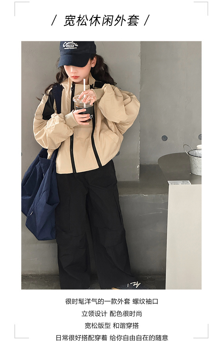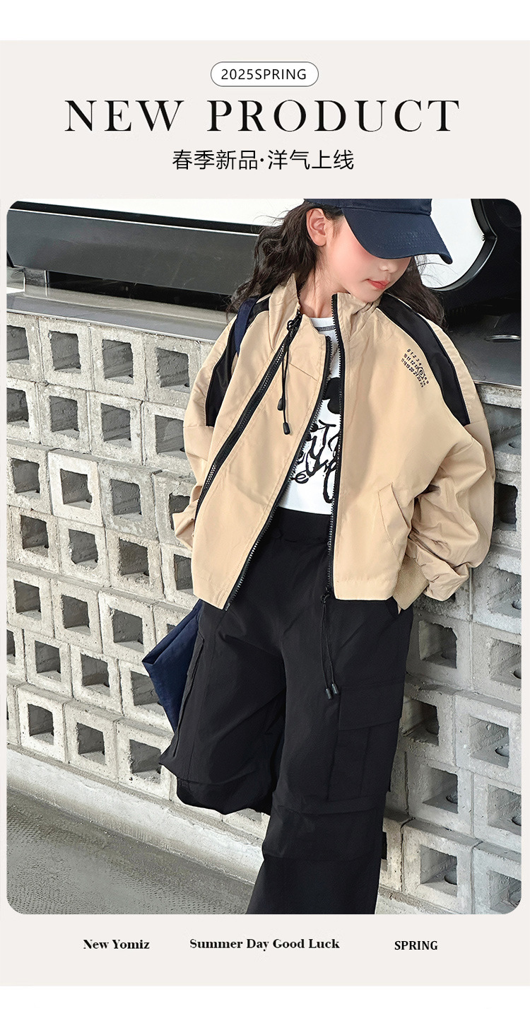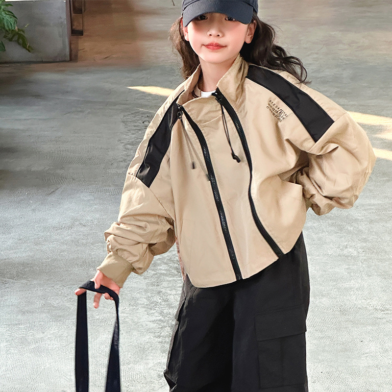 소녀 2025 새로운 스타일 코트 봄과 가을 서양식 어린이 중 · 대형 어린이 봄 최고 중학교 학생 더블 지퍼 재킷스토어 가기