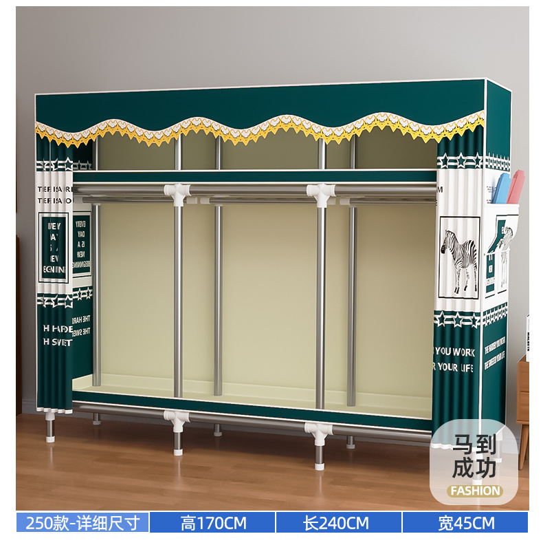 렌탈 룸을위한 간단한 옷장 가정용 침실 강력하고 내구성이 강한 풀 스틸 프레임 스틸 파이프 천 캐비닛 보관 캐비닛스토어 가기