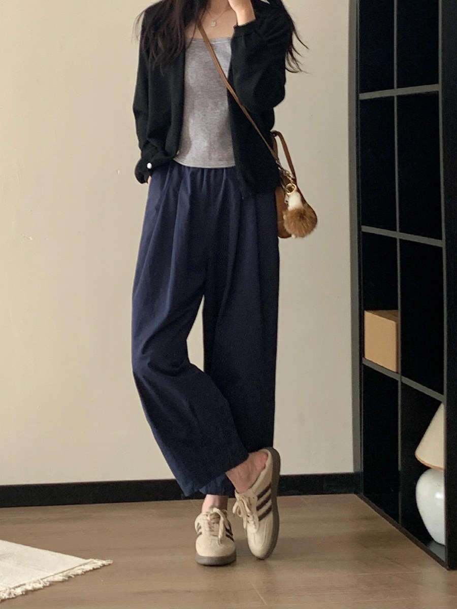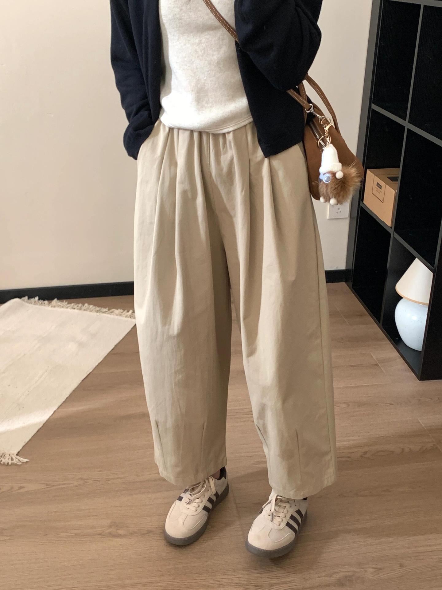 日系慵懒风镰刀休闲裤女大码胖mm梨形身材松紧腰九分哈伦奶奶裤子