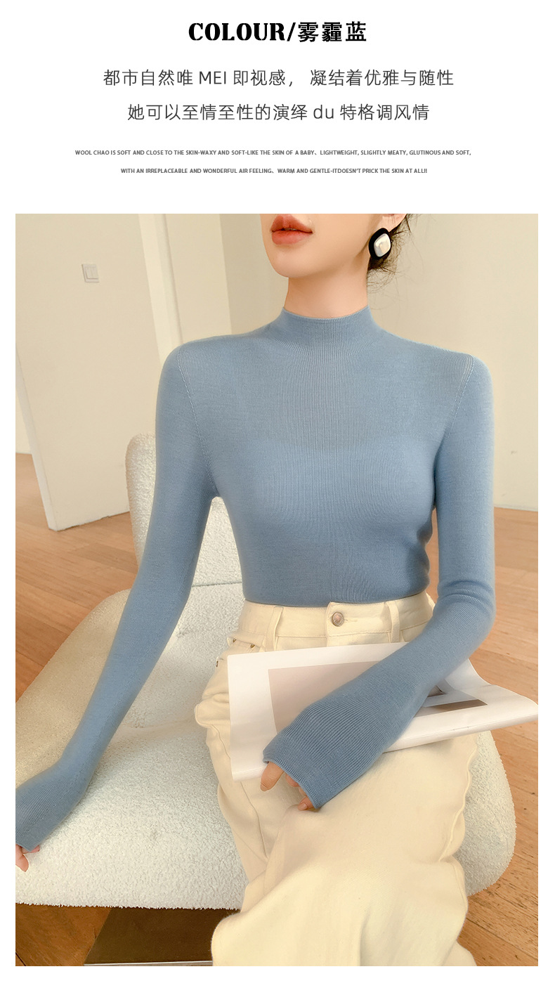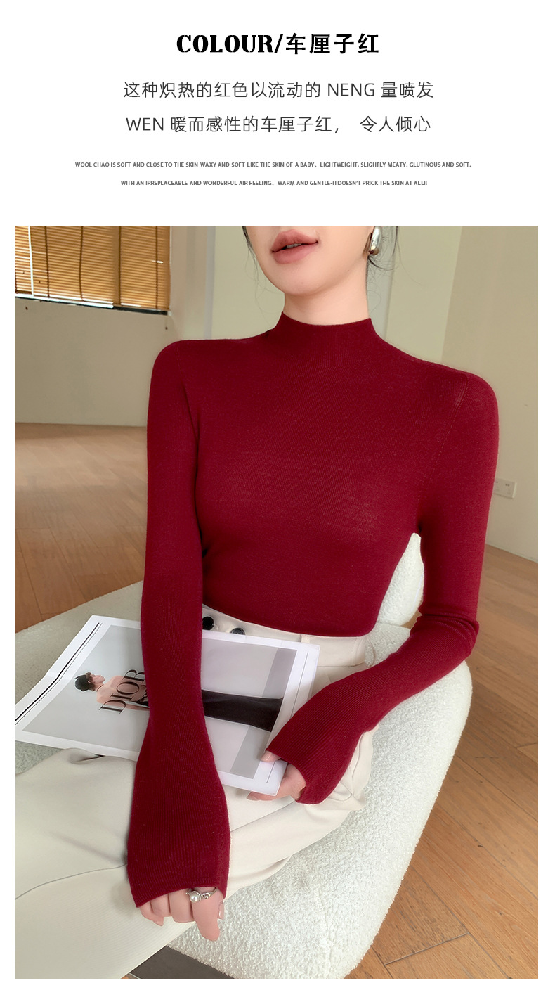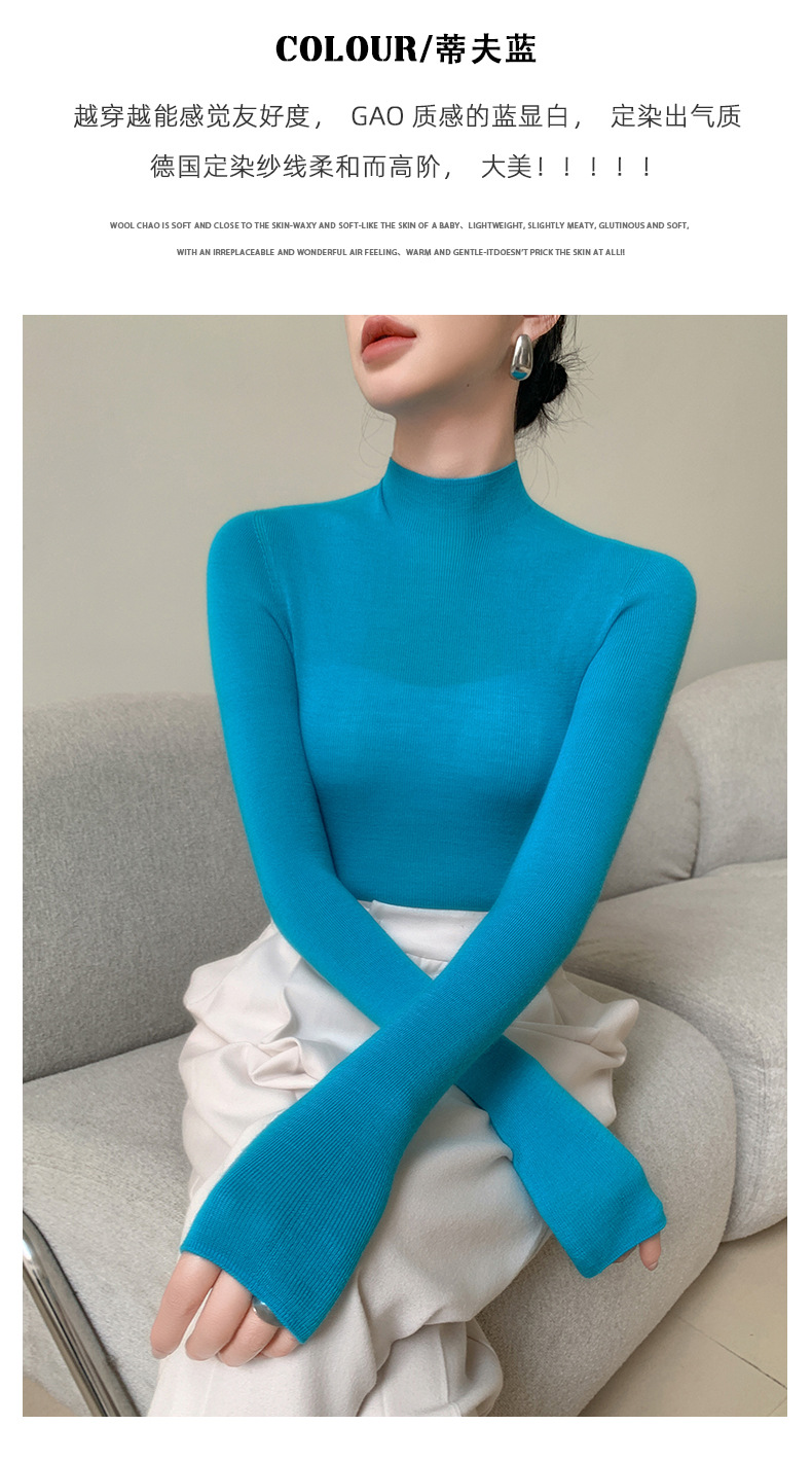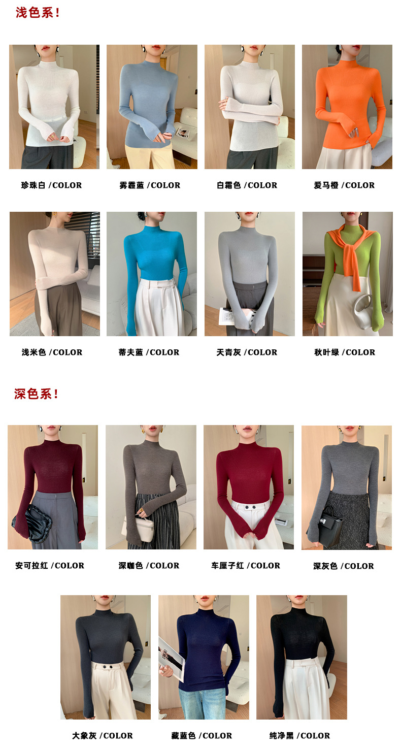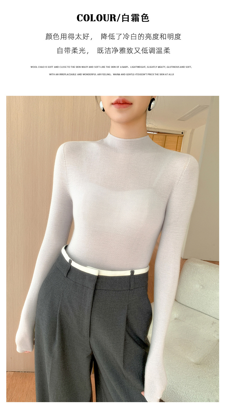 2025 봄과 가을 새로운 반 높은 칼라 순수 양모 니트웨어 여성용 슬림핏 슬리밍 스웨터 심플베이스 셔츠 탑스토어 가기