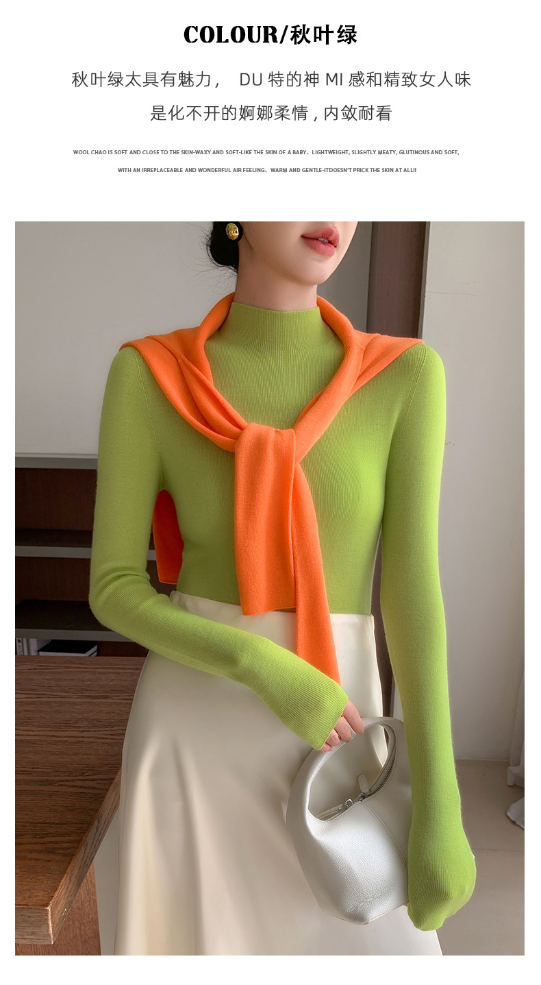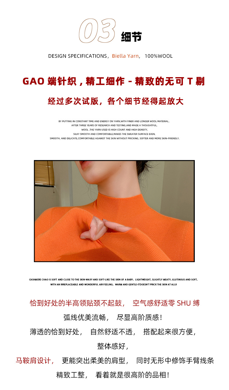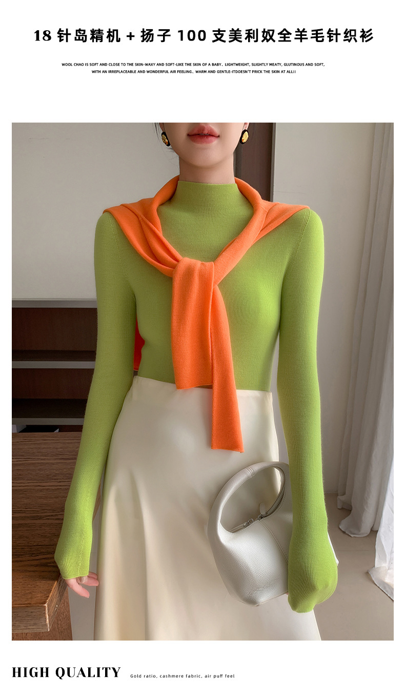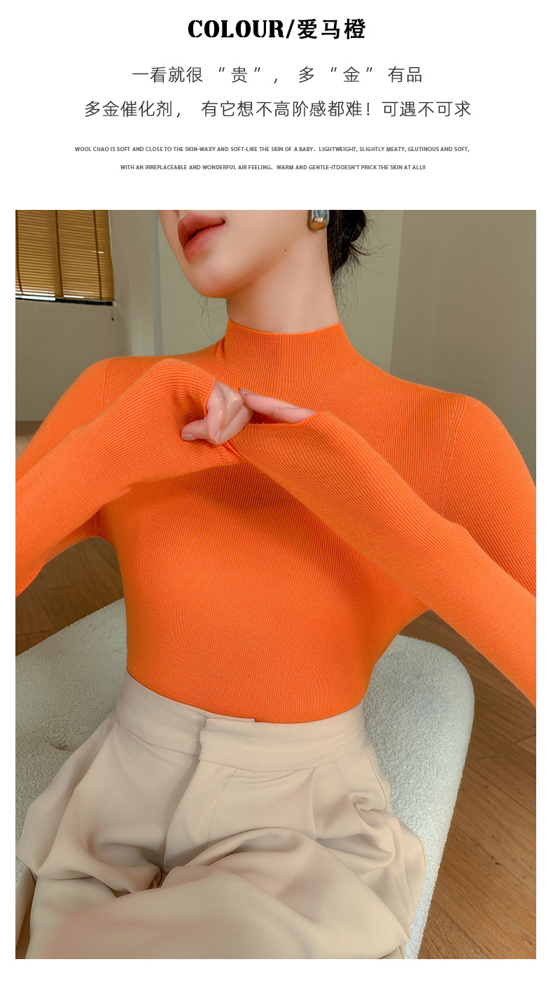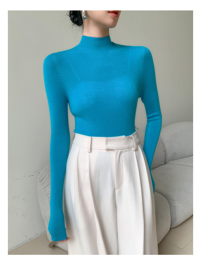 2025 봄과 가을 새로운 반 높은 칼라 순수 양모 니트웨어 여성용 슬림핏 슬리밍 스웨터 심플베이스 셔츠 탑스토어 가기