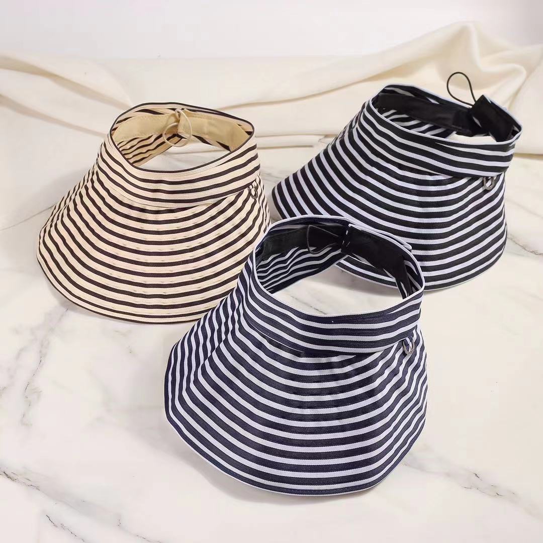 모자 여성의 여름 패션 Pic 차양 모자 흑백 줄무늬 사이클링 야외 태양 보호 저장 빈 탑 모자 트렌디스토어 가기