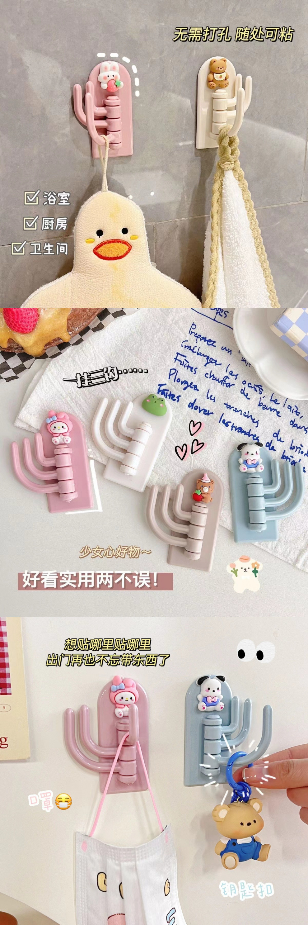 새로운 펀치없는 후크 귀여운 추적없는 3 후크 벽 강한 붙여 넣기 도어 뒷짐 베어링 접착 후크 회전 열쇠 고리
