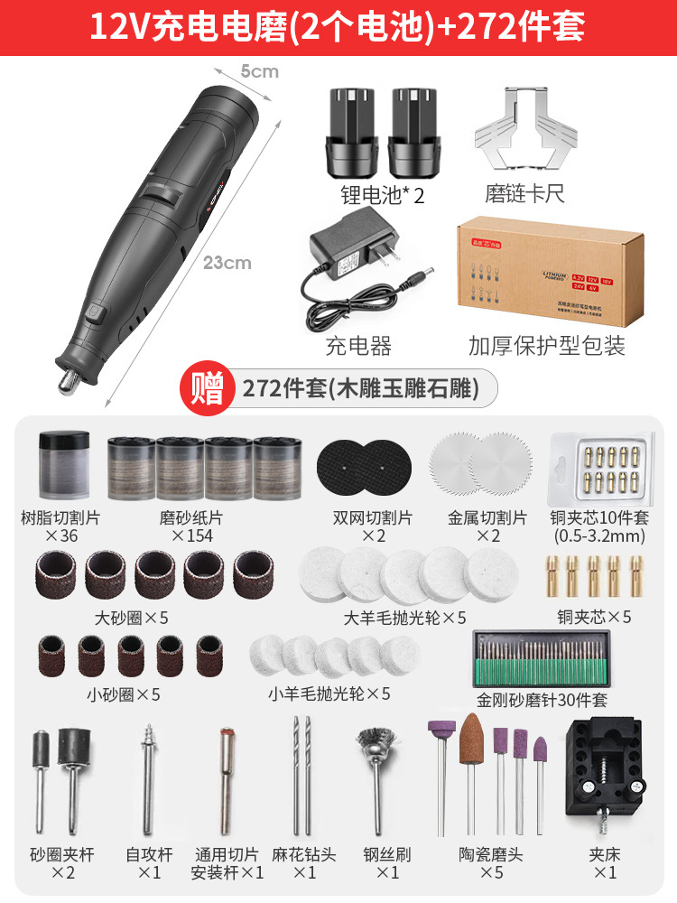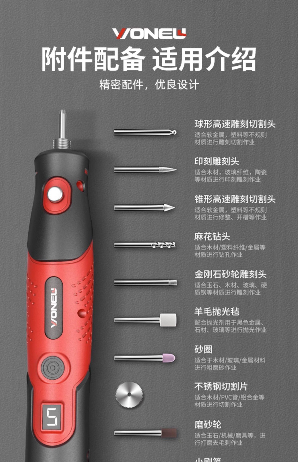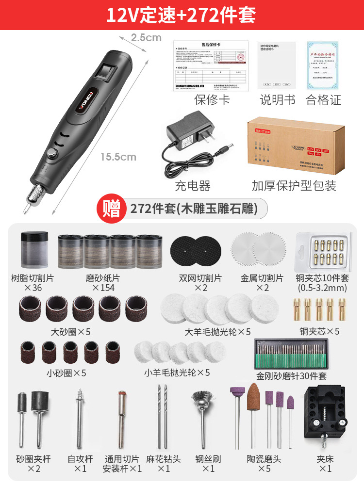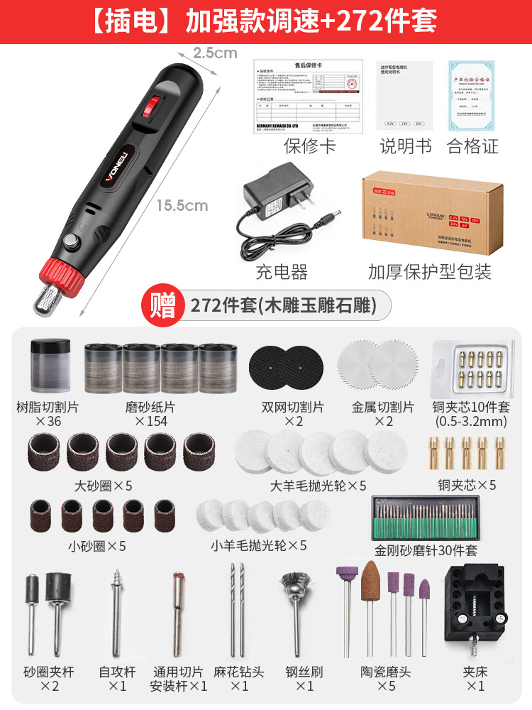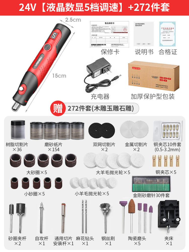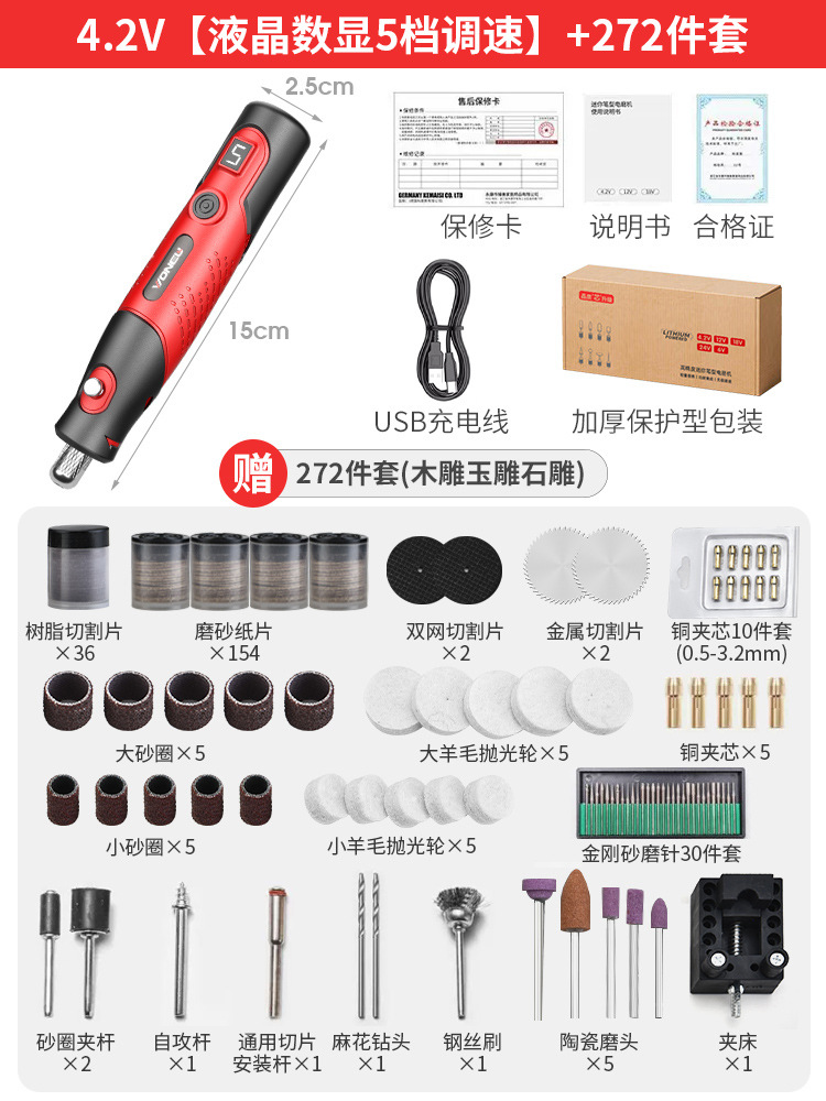 • 4.2V 충전식 모델[LCD 디지털 디스플레이 5단 속도 조절] + 272개 세트(목각/심각/옥각/석각)