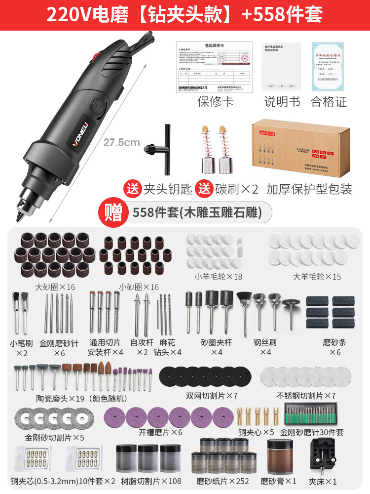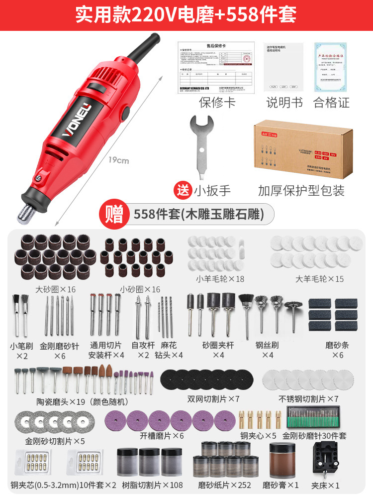 • [220V 실용 최고 모델] 무단계 속도 조절 + 558개 세트