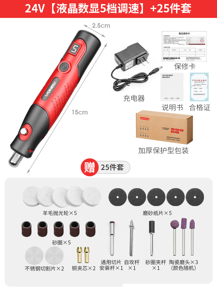 • 24V 플러그인 모델 [LCD 디지털 디스플레이 5단 속도조절] + 25개 세트(목각/옥각/석각)