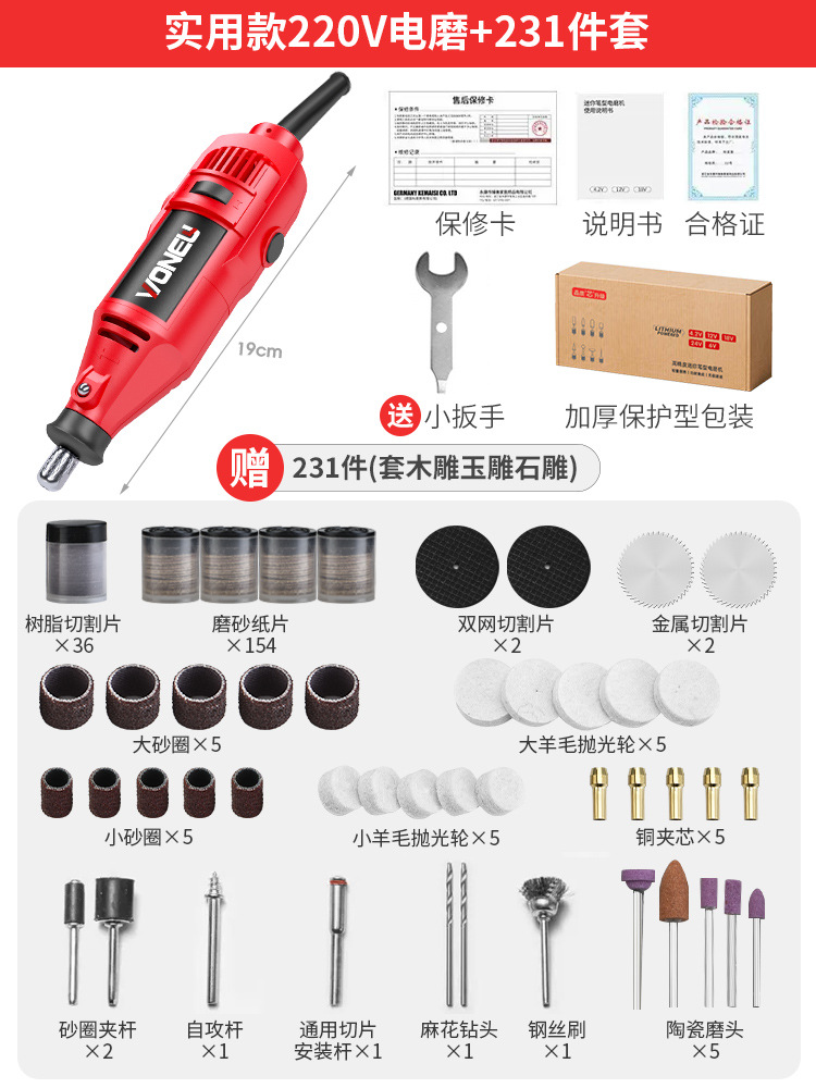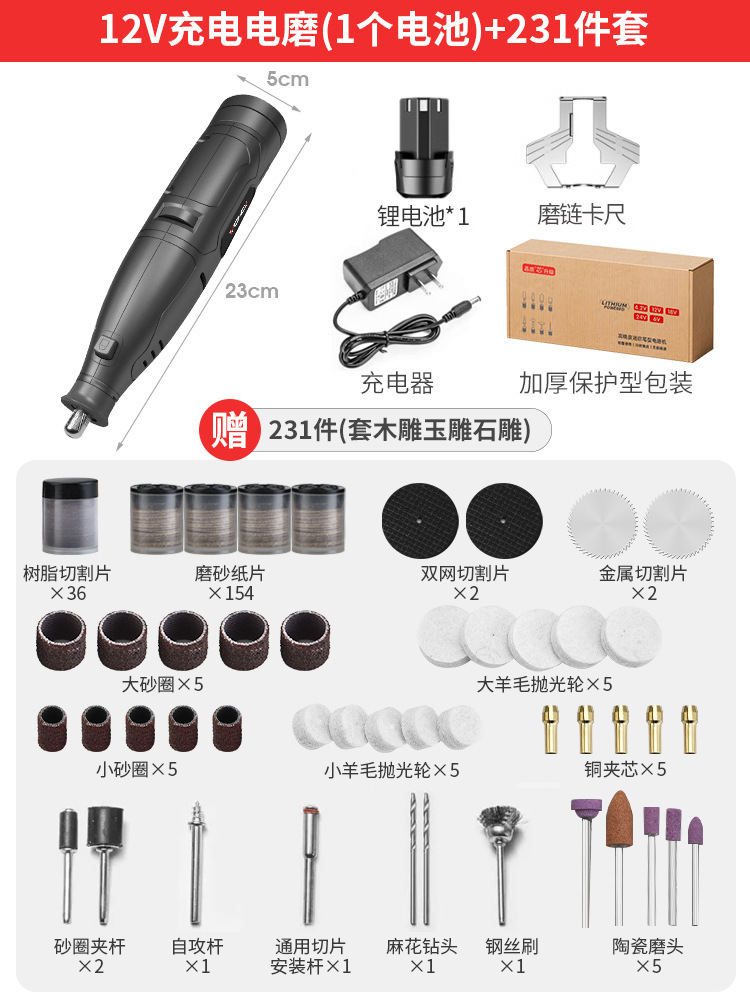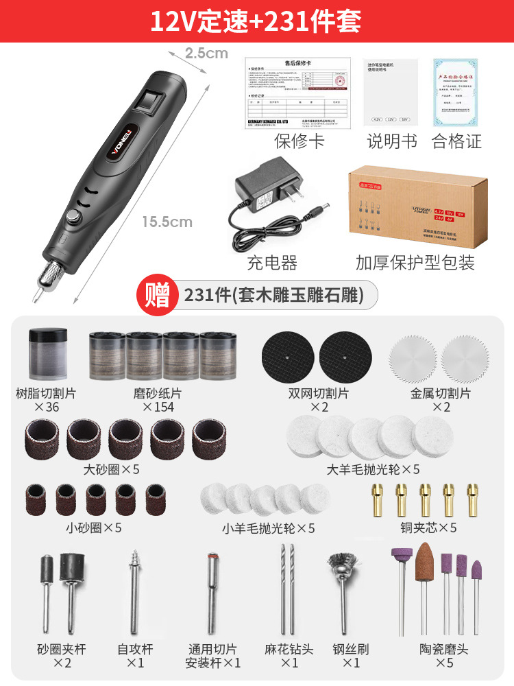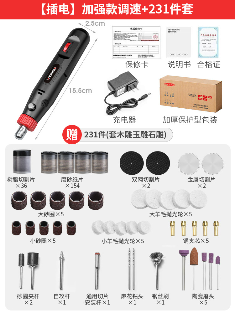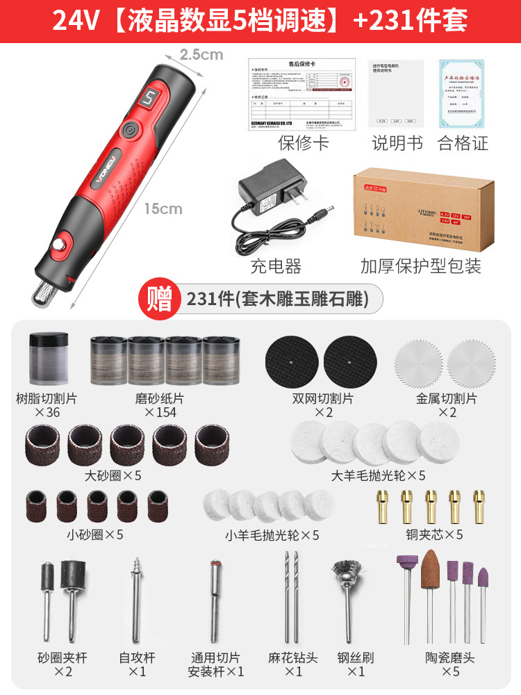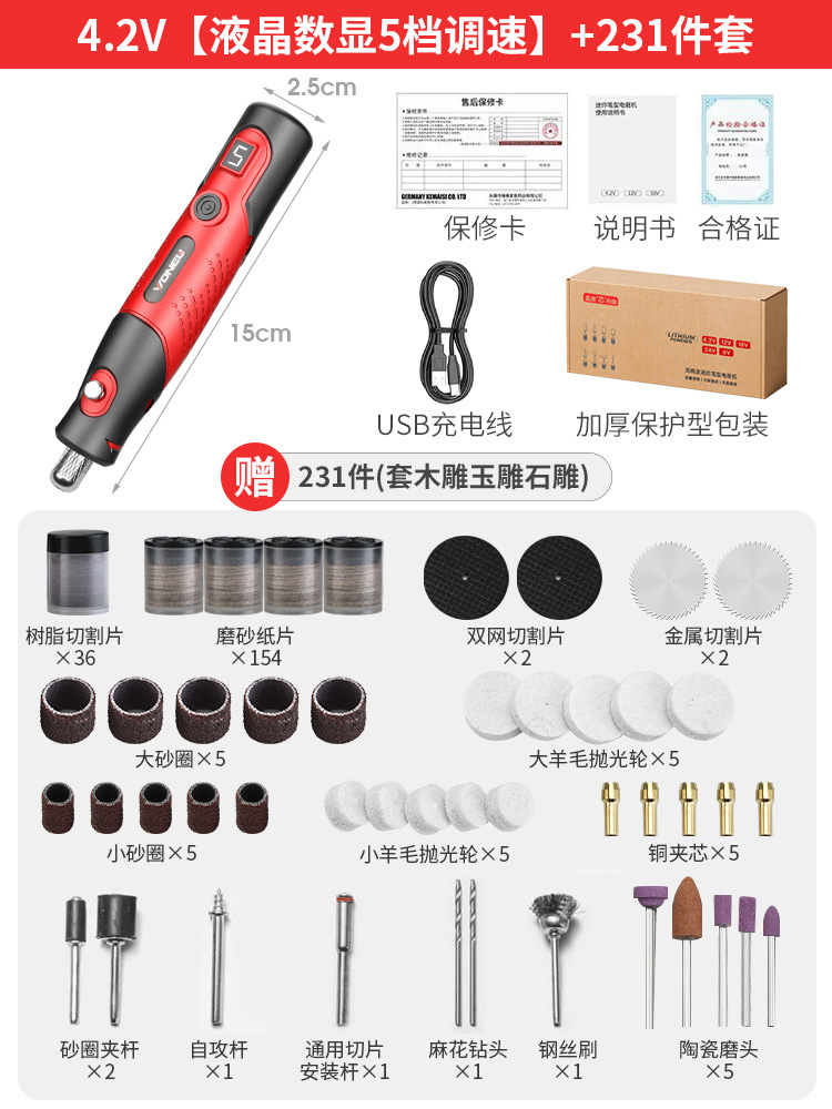 • 4.2V 충전식 모델 [LCD 디지털 디스플레이 5단 속도 조절] + 231개 세트(목각/심각/옥각/석각)