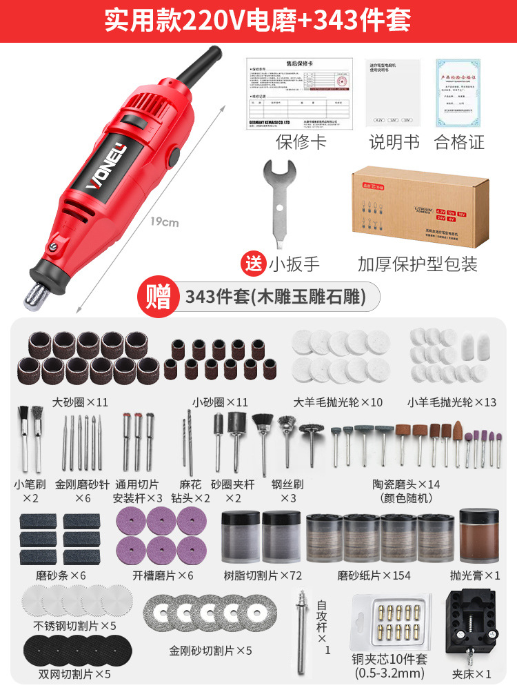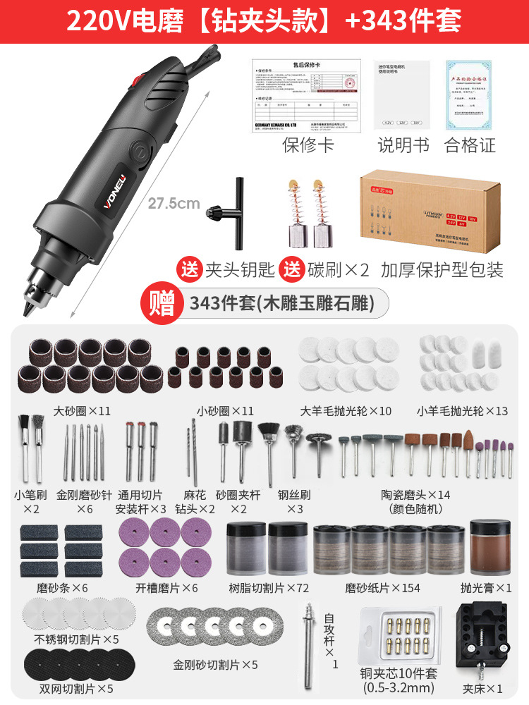 • [220V 실용 최고 모델] 무한 속도 조절 + 343개 세트