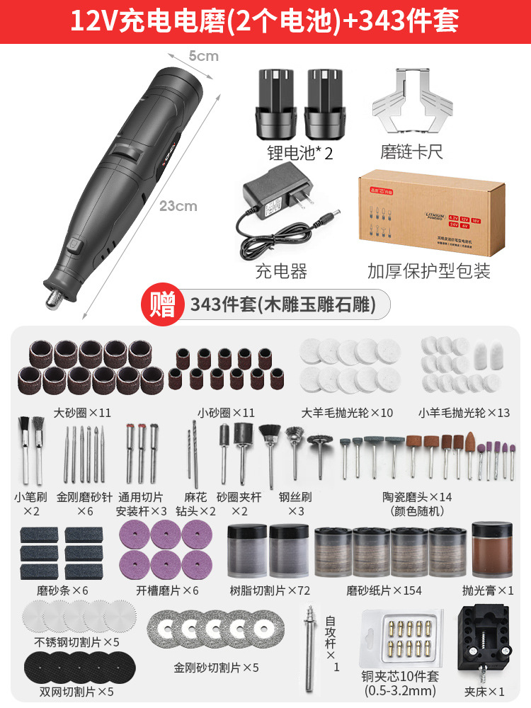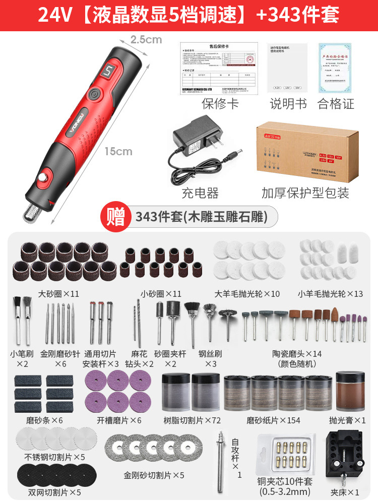 • 4.2V 충전식 모델 [LCD 디지털 디스플레이 5단 속도 조절] + 343개 세트(목각/심각/옥각/석각)