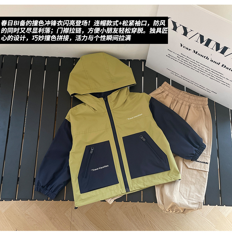 바람의 계곡 2025 봄 새 아동복 어린이 일본 명암 후드재킷 소년 봄 가을 알파벳 자켓스토어 가기