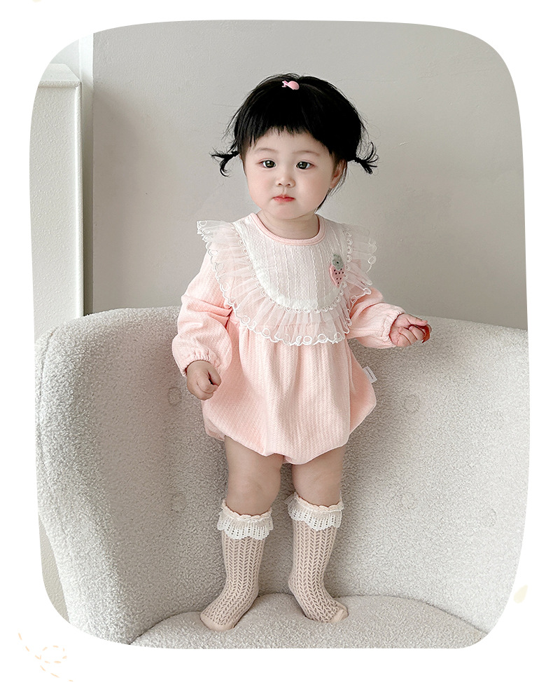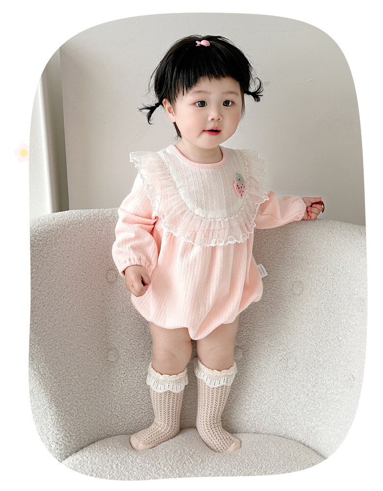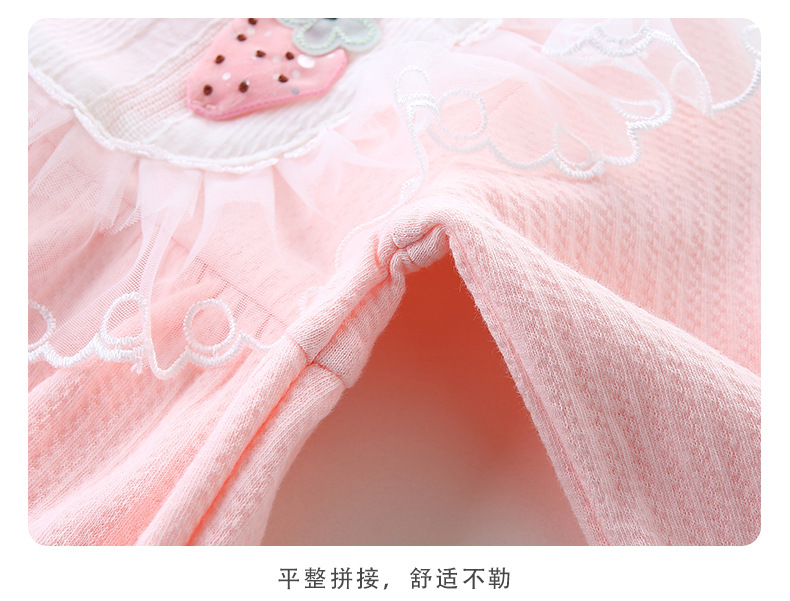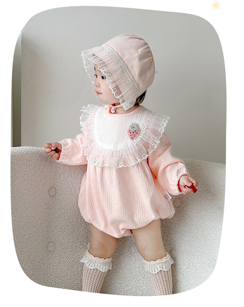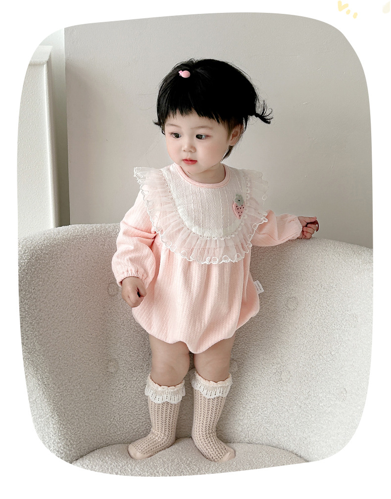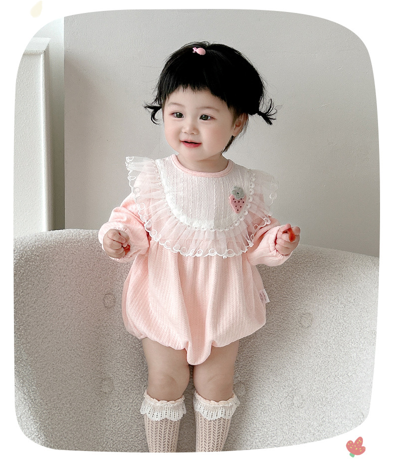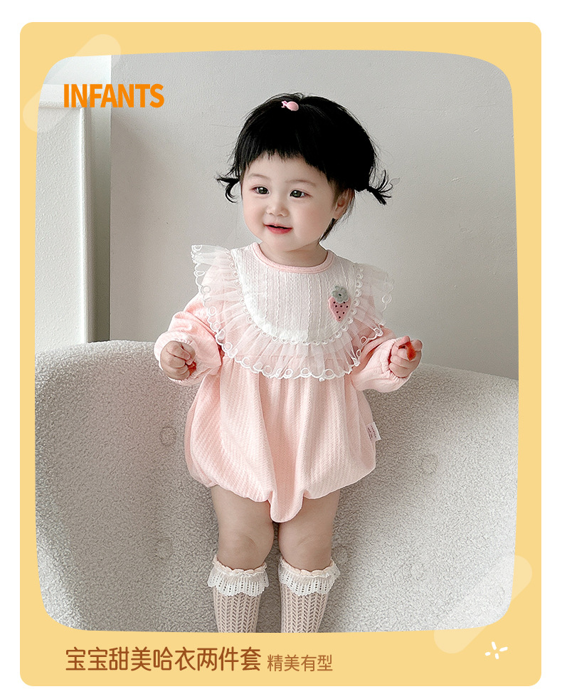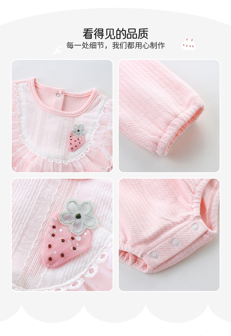 봄과 가을 새로운 2025 긴팔 아기 등반 착용 딸기 삼각형 Hassel 2135 귀여운 여성 원피스스토어 가기