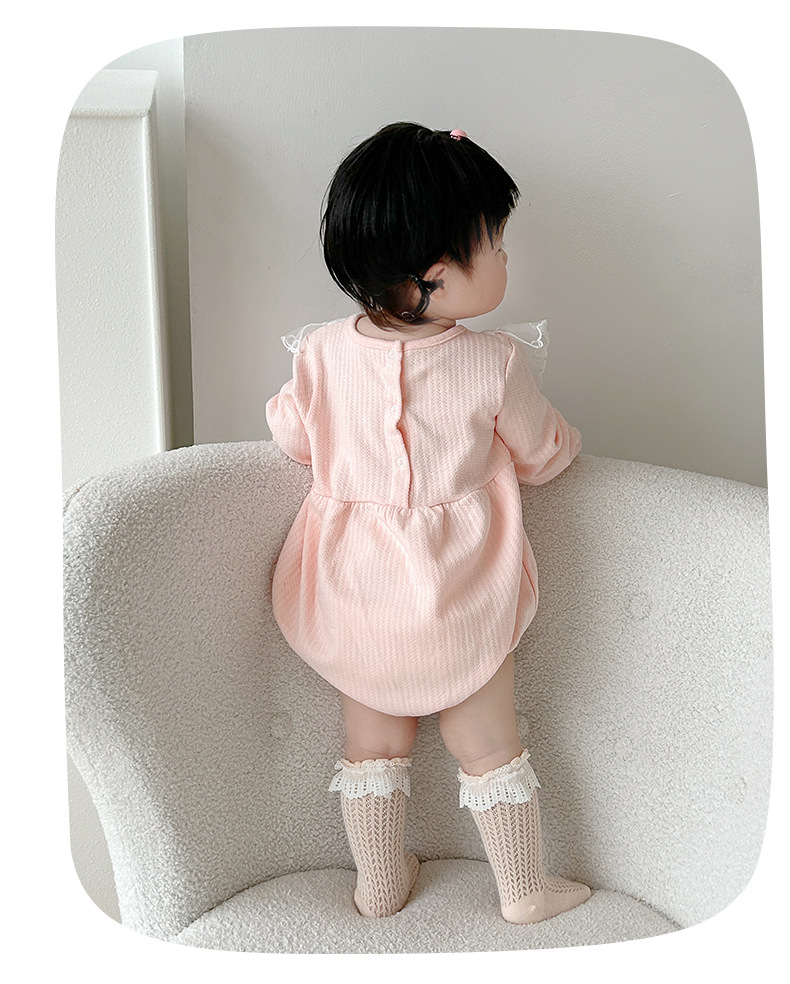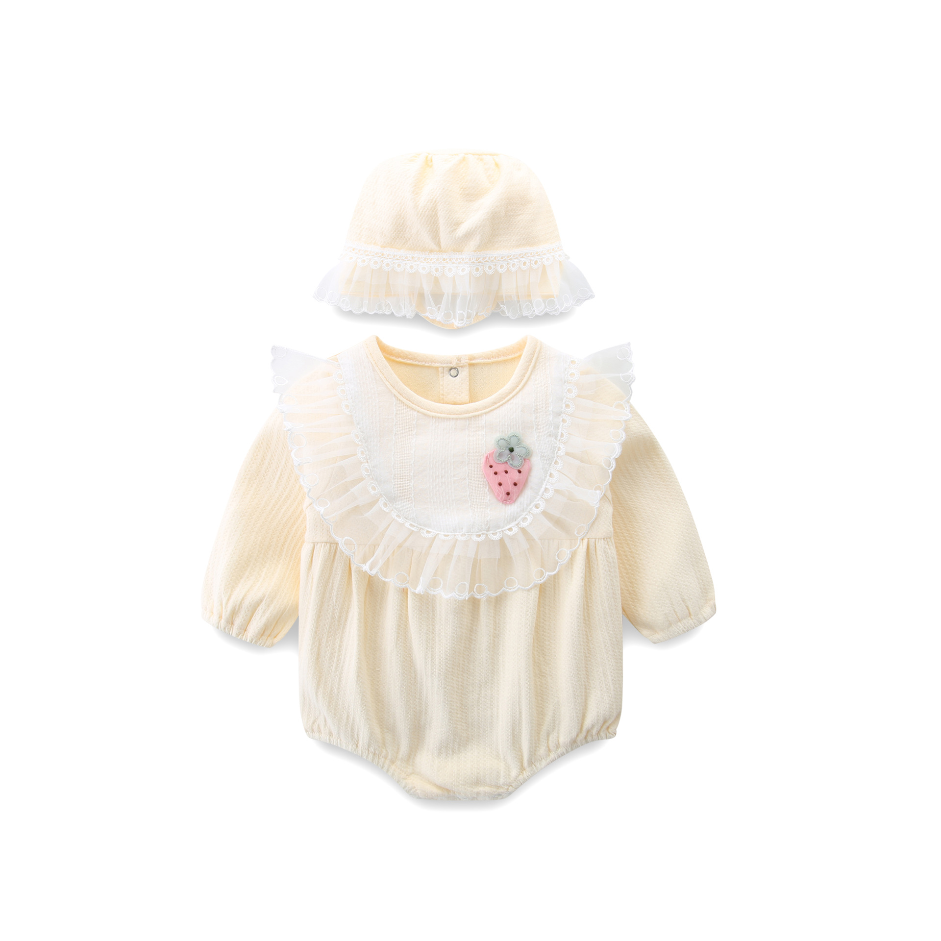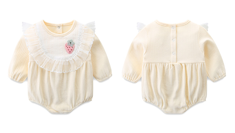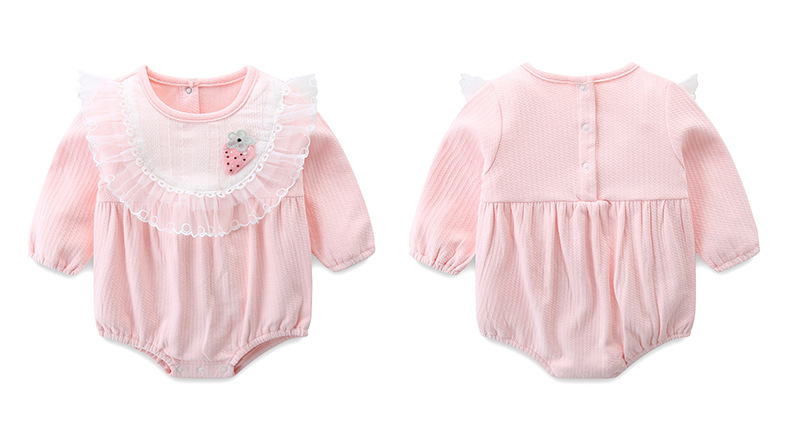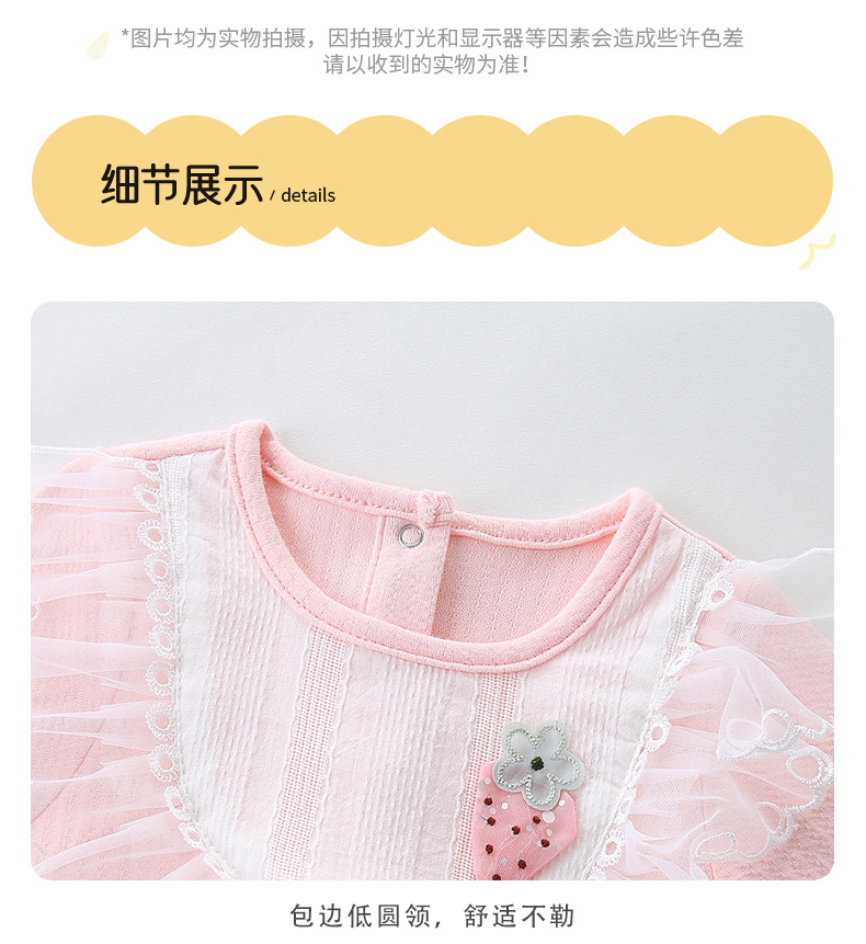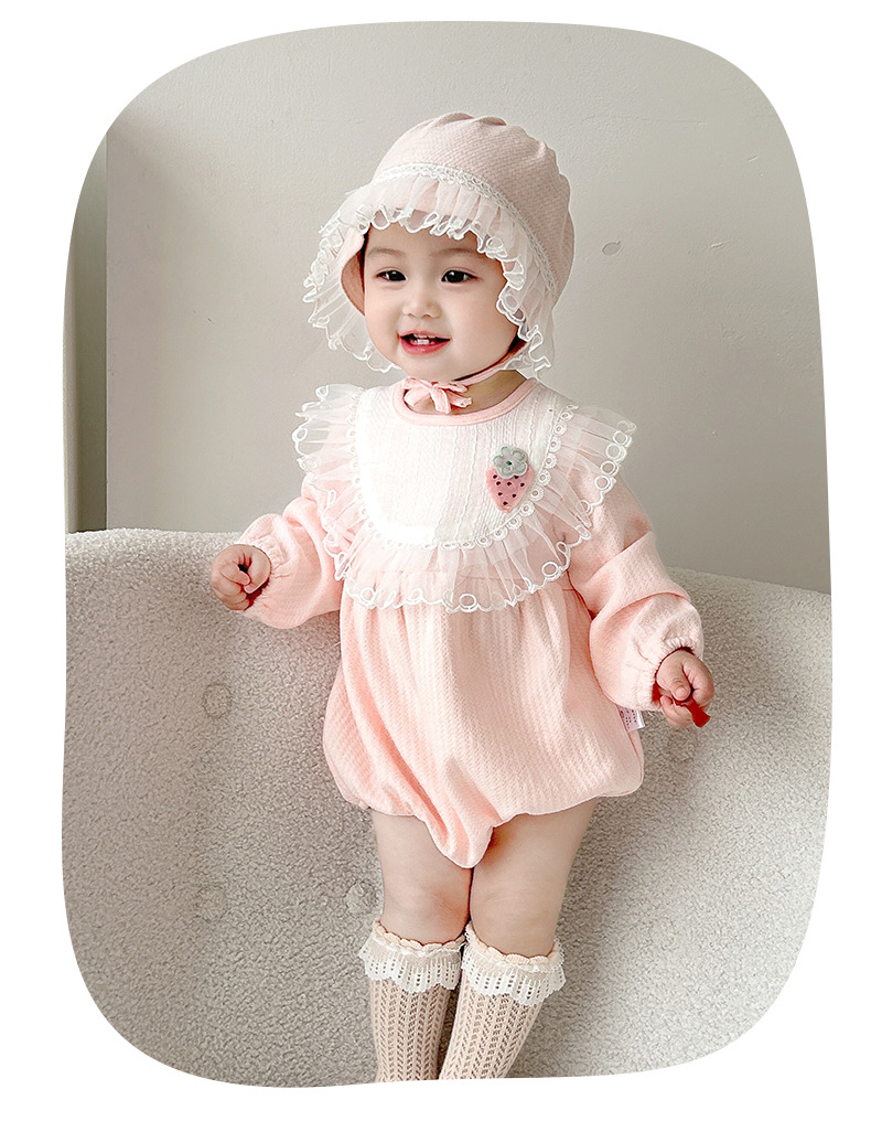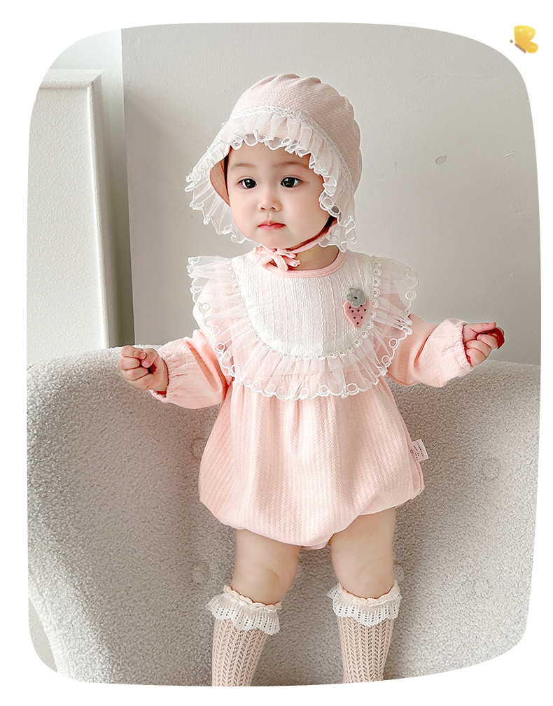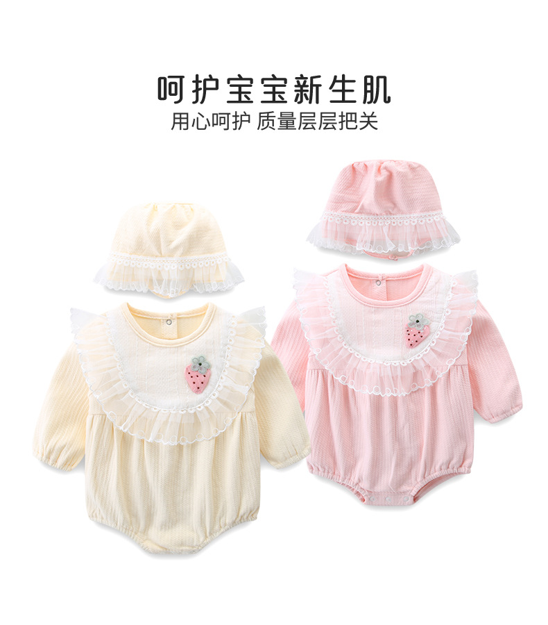 봄과 가을 새로운 2025 긴팔 아기 등반 착용 딸기 삼각형 Hassel 2135 귀여운 여성 원피스스토어 가기