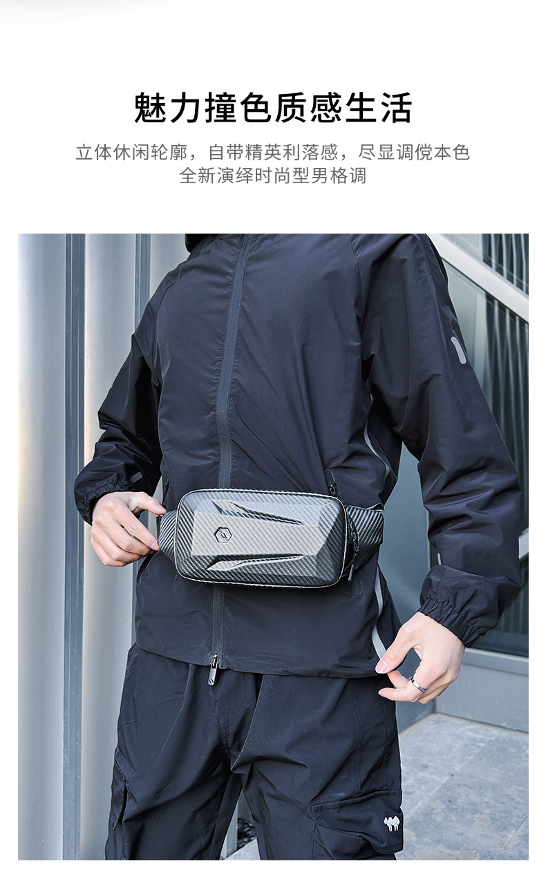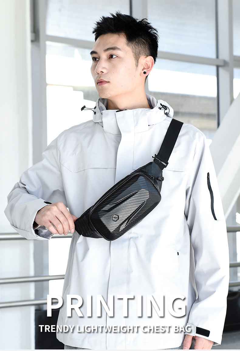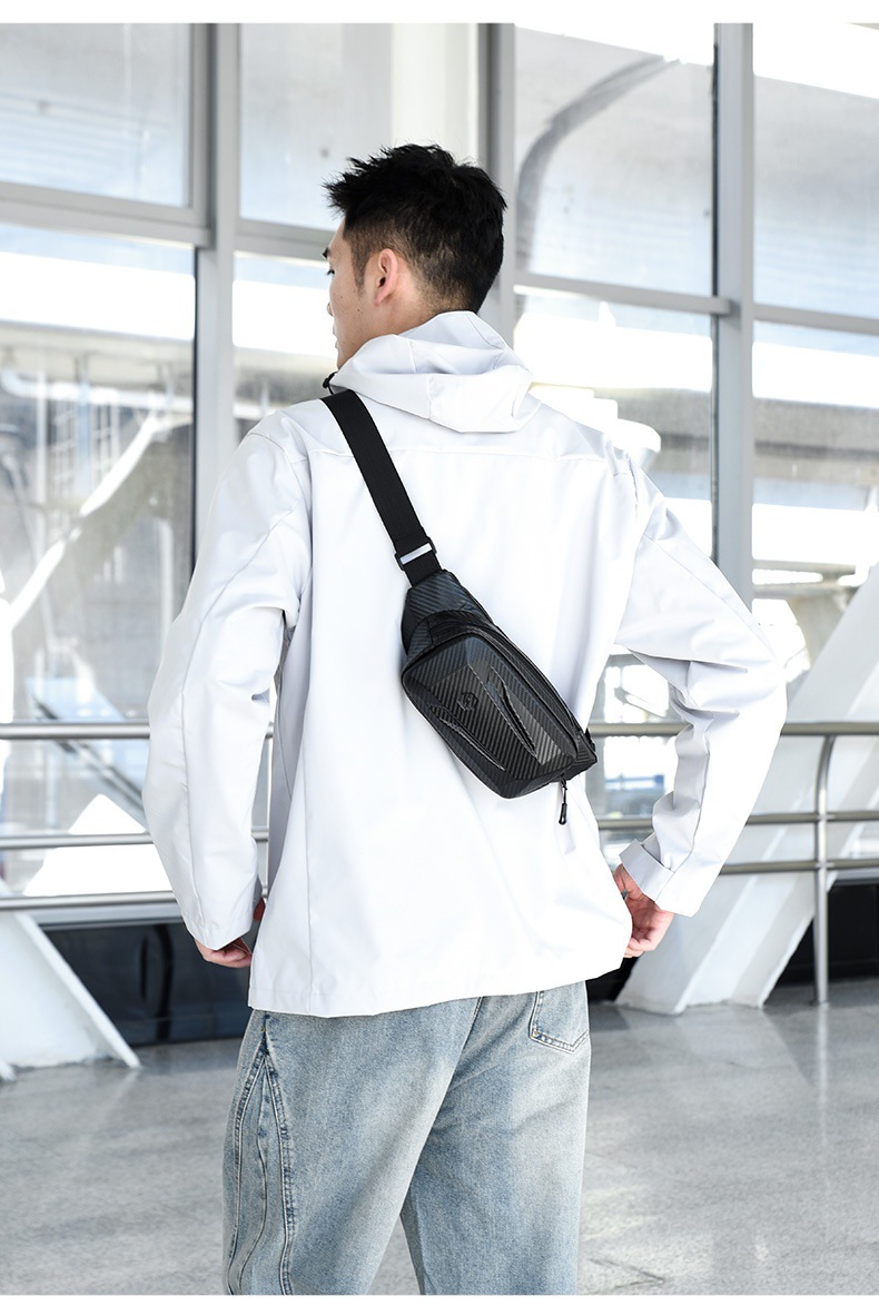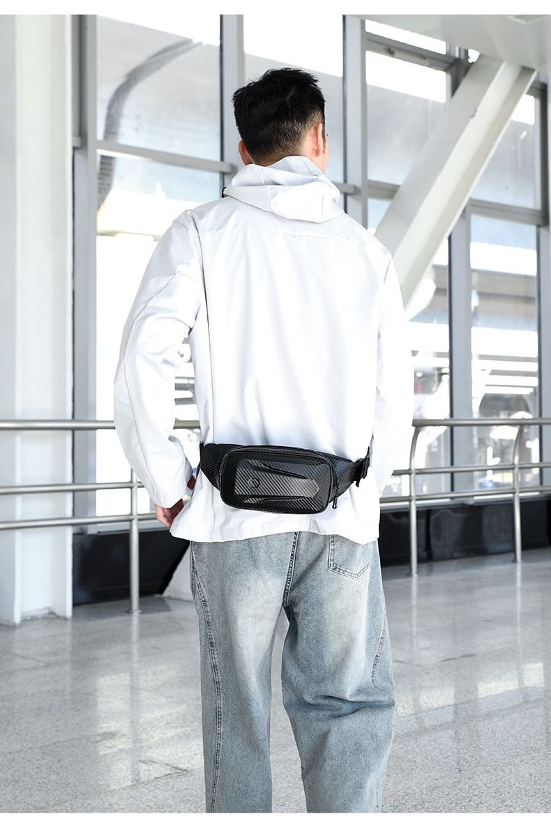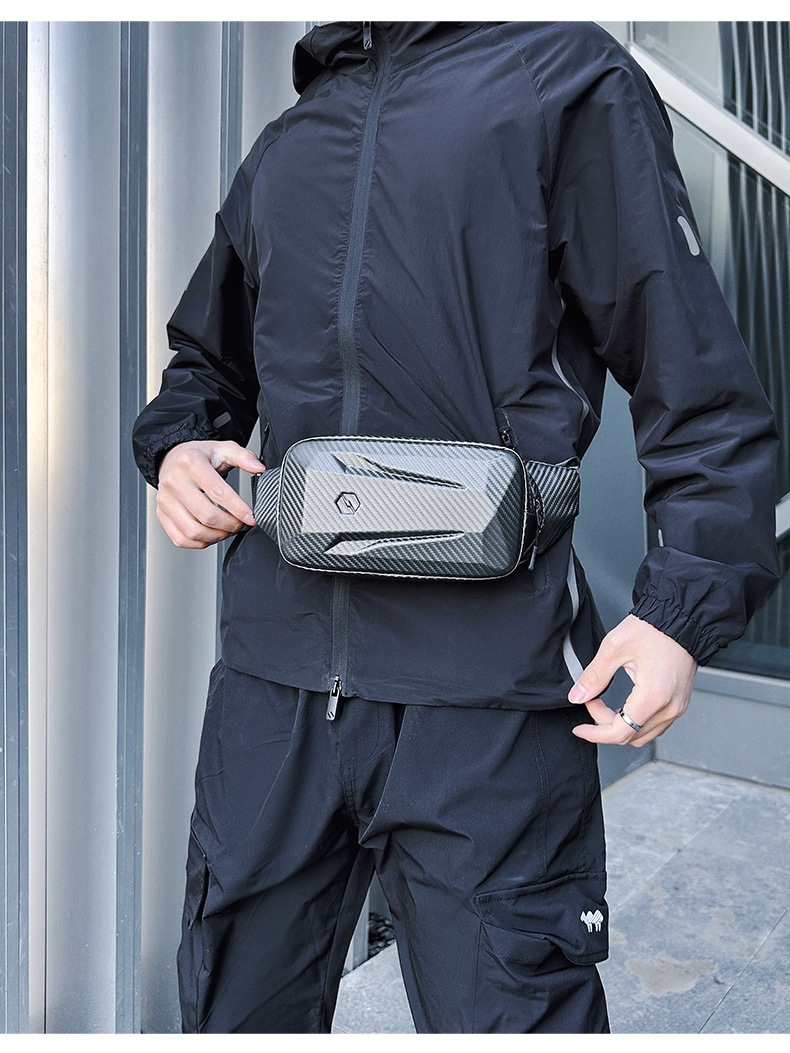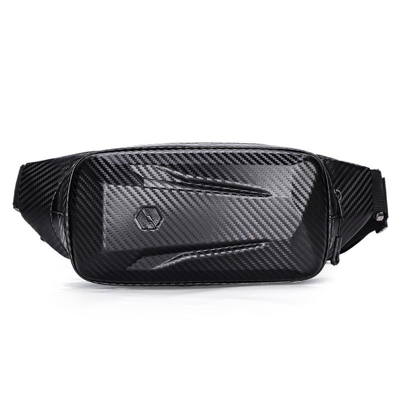 새로운 남성 크로스 바디 백 허리 가방 캐주얼 남성과 여성의 오토바이 여행 물 튀는 탄소 섬유 패턴 휴대용 야외 작은 배낭