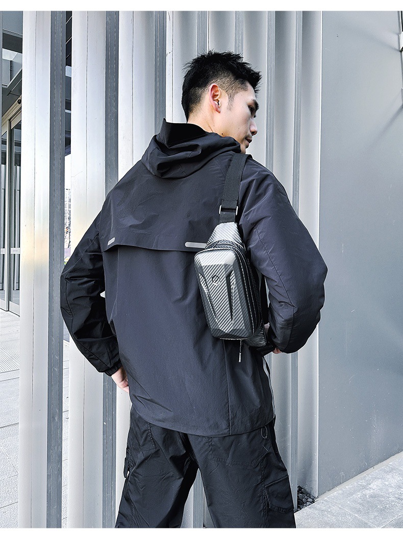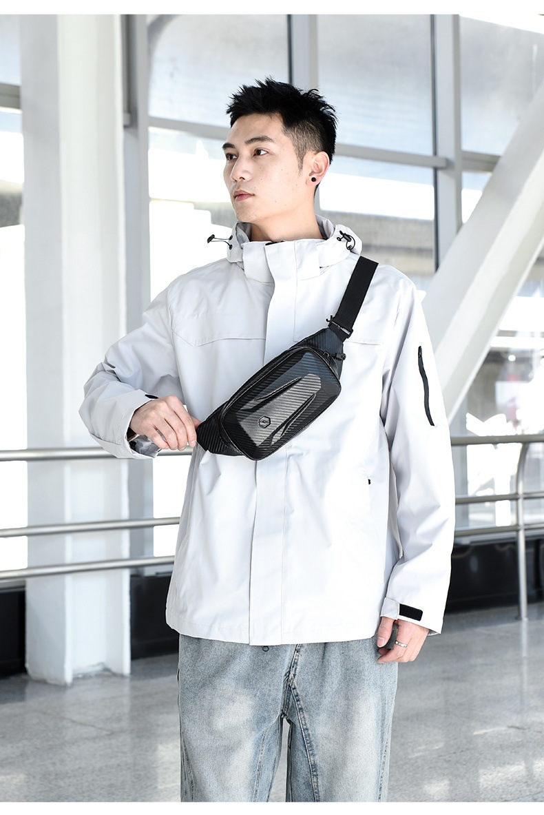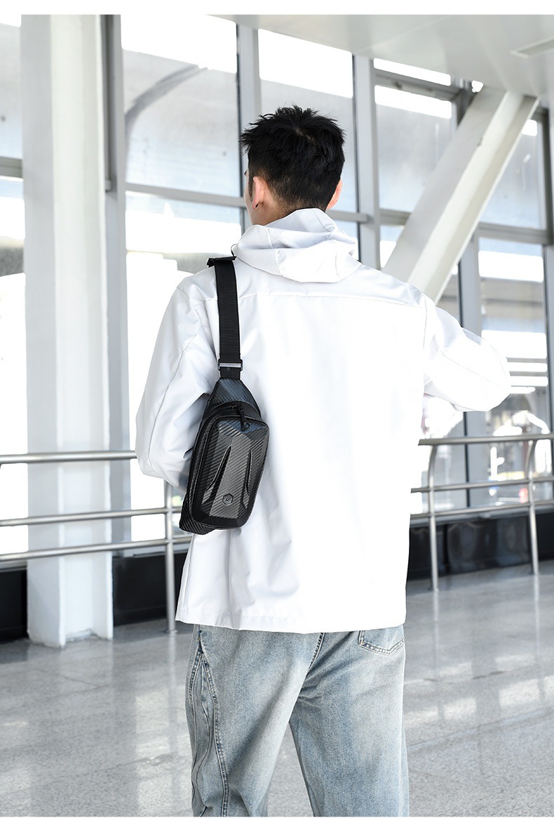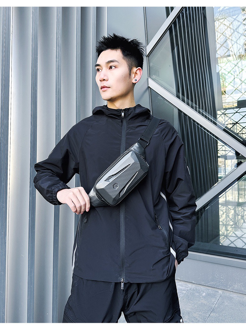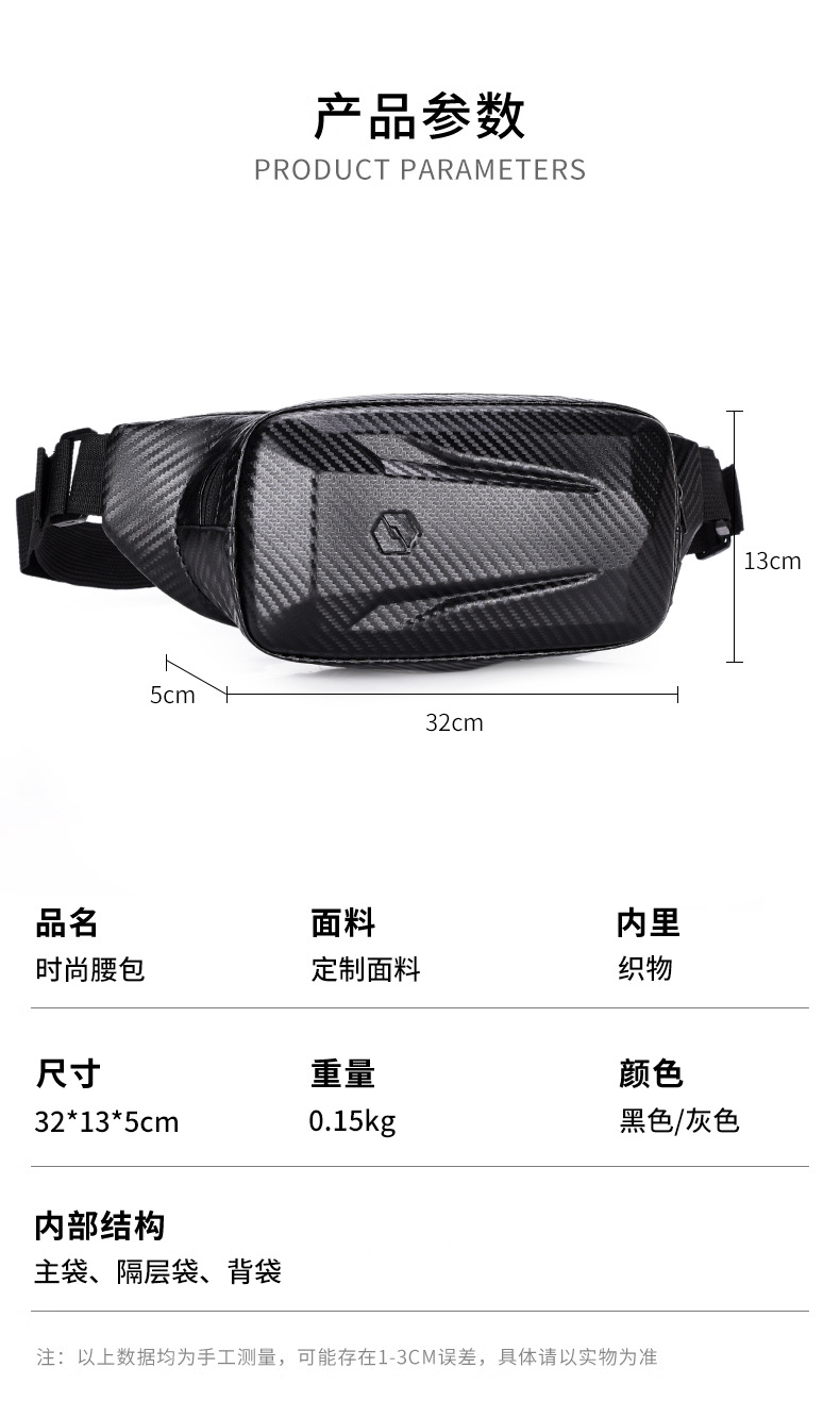 새로운 남성 크로스 바디 백 허리 가방 캐주얼 남성과 여성의 오토바이 여행 물 튀는 탄소 섬유 패턴 휴대용 야외 작은 배낭