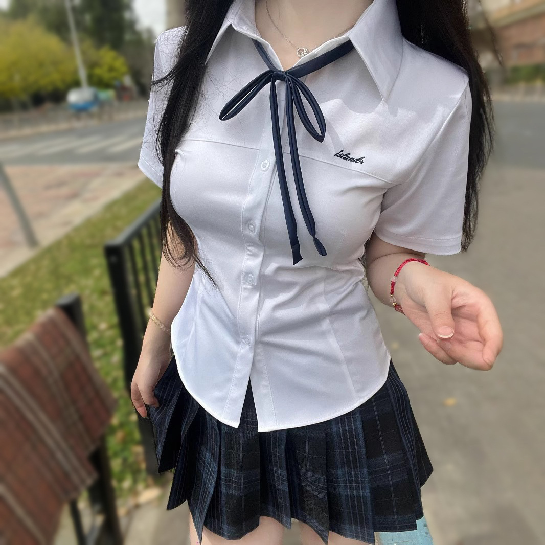 Kojima Original 새로운 자수 JK 슬림 핏 반팔 셔츠 화이트 올 매치 유니폼 대학 순수한 욕망 스타일 셔츠