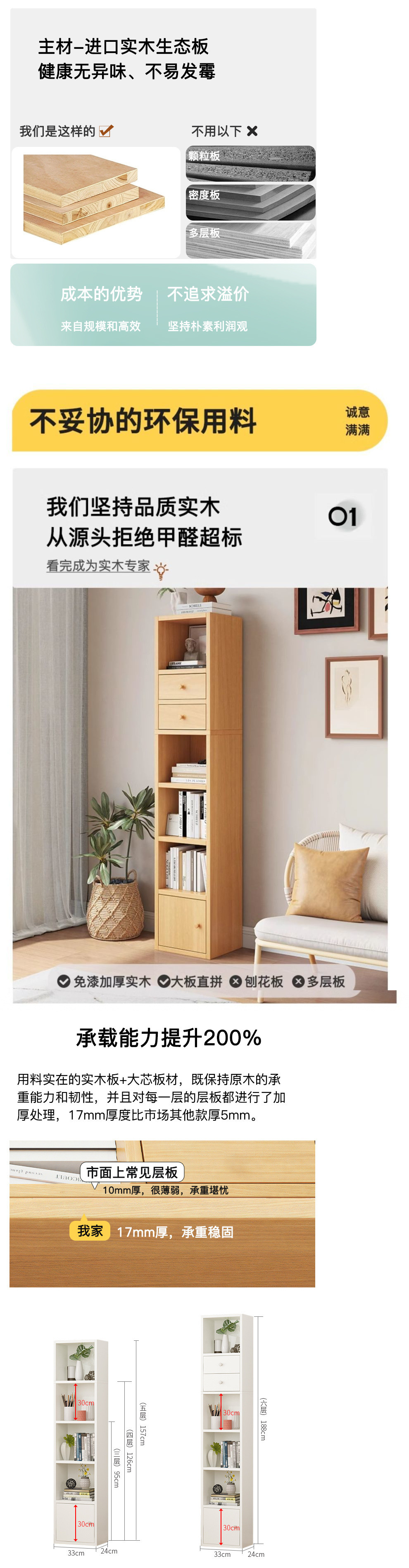 • [완전 밀폐형 후면 패널] 6겹 높이 188cm*너도밤나무 색상 + 흰색 문
