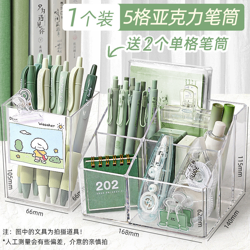 투명 펜 홀더 아크릴 대용량 어린이 및 소녀 초등학교 학생 책상 문구 저장 상자 저장 랙 높은