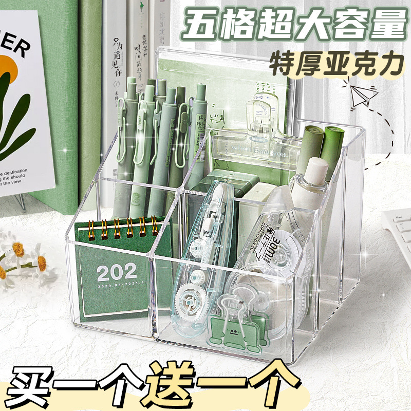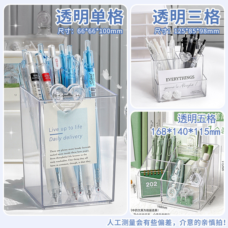 투명 펜 홀더 아크릴 대용량 어린이 및 소녀 초등학교 학생 책상 문구 저장 상자 저장 랙 높은스토어 가기