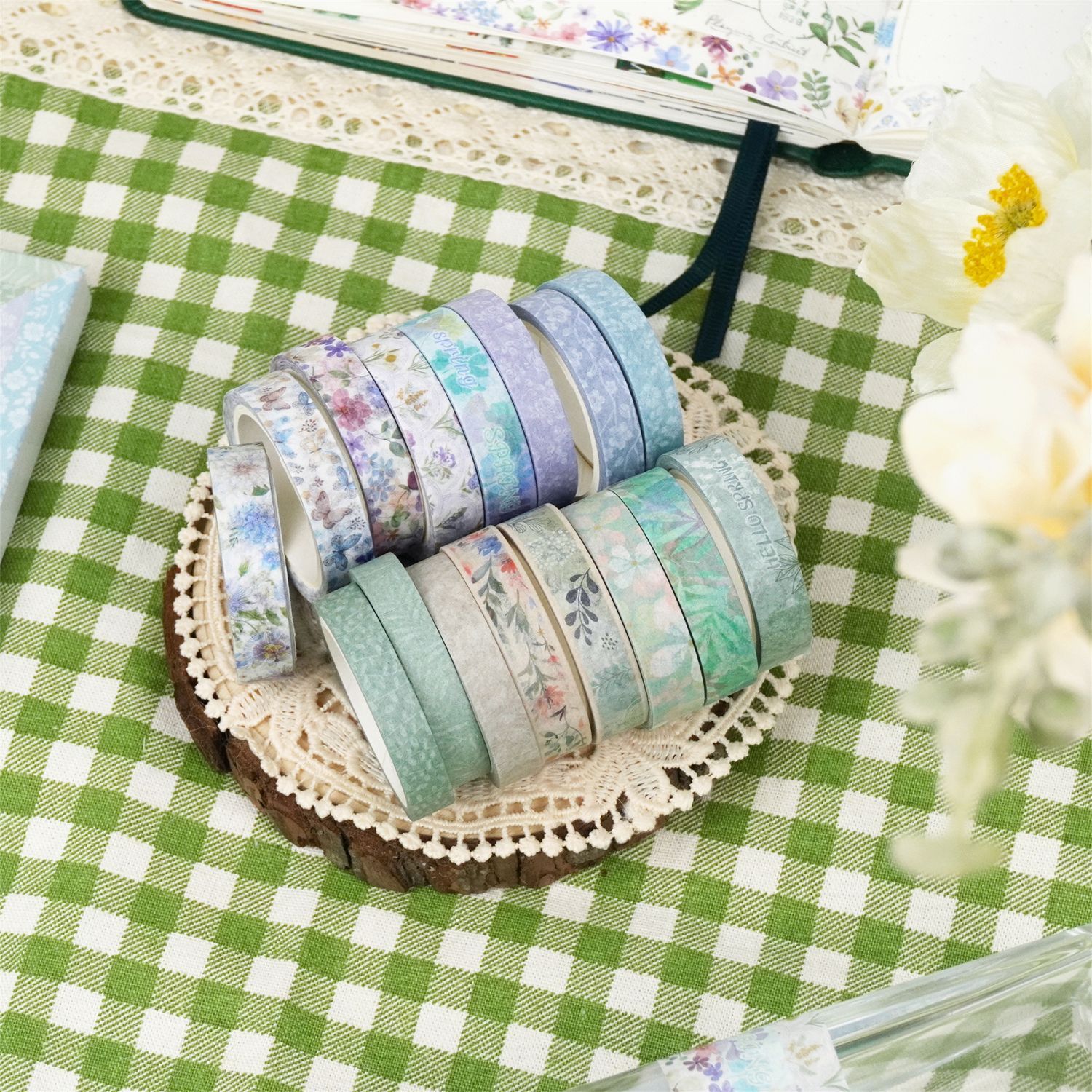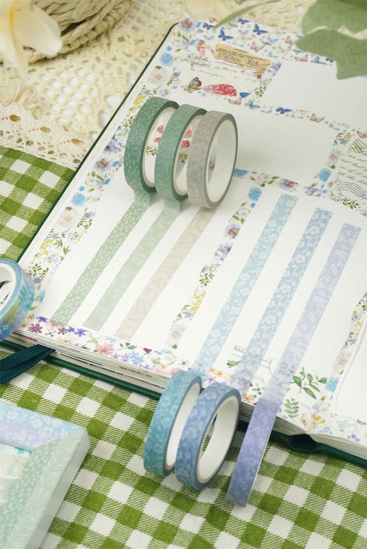 국경 도매 봄 얇은 스트립 식물 꽃 작은 신선한 나비 DIY 장식 손 계정 테이프 아마존 공급스토어 가기