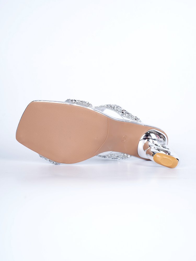 2025 여름 새로운 유럽과 미국의 패션 8 단어 두꺼운 힐 샌들 투명 모조 다이아몬드 스퀘어 헤드 하이힐 여성 신발 대외 무역