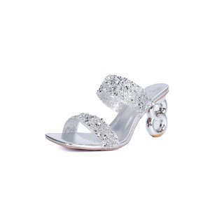 2025 여름 새로운 유럽과 미국의 패션 8 단어 두꺼운 힐 샌들 투명 모조 다이아몬드 스퀘어 헤드 하이힐 여성 신발 대외 무역스토어 가기