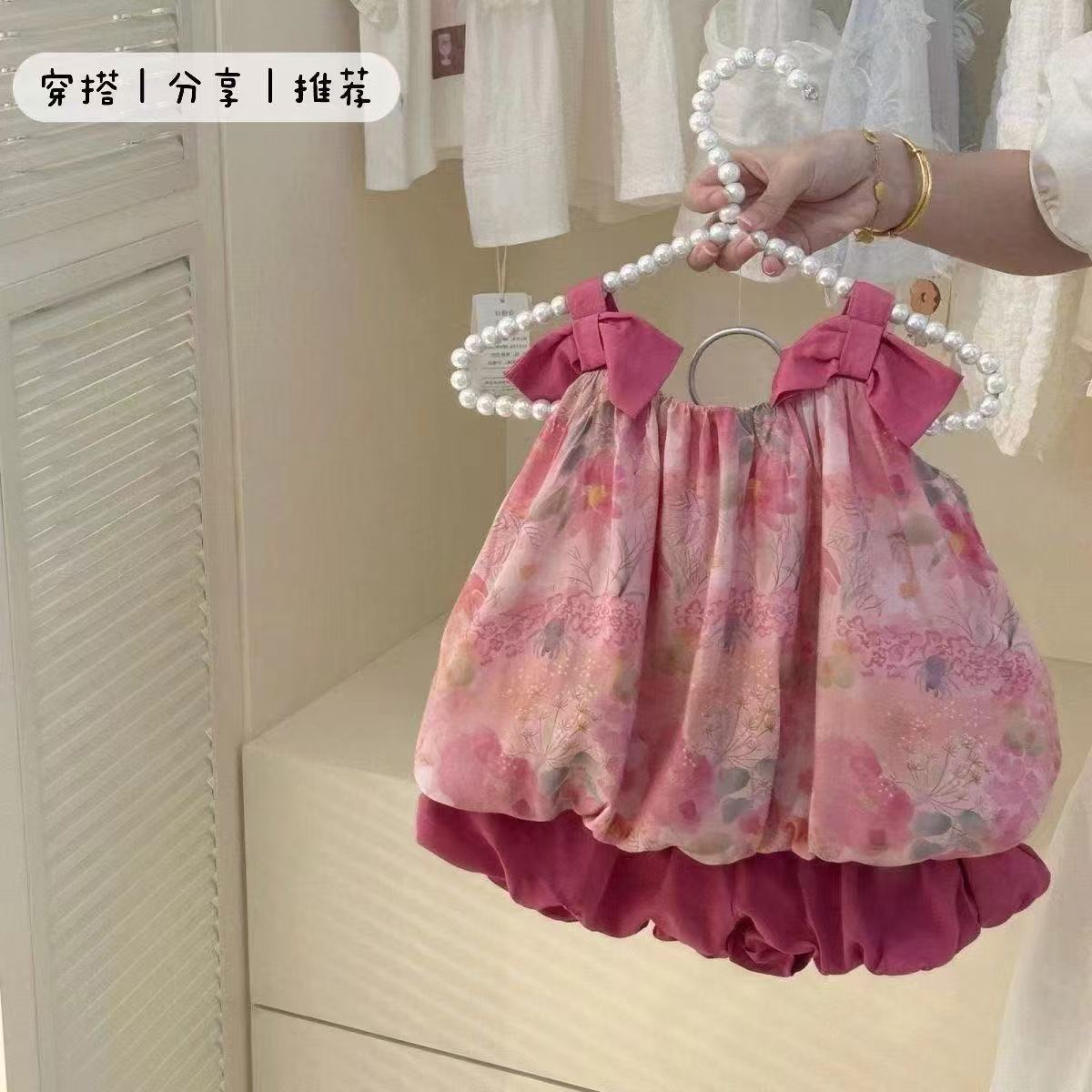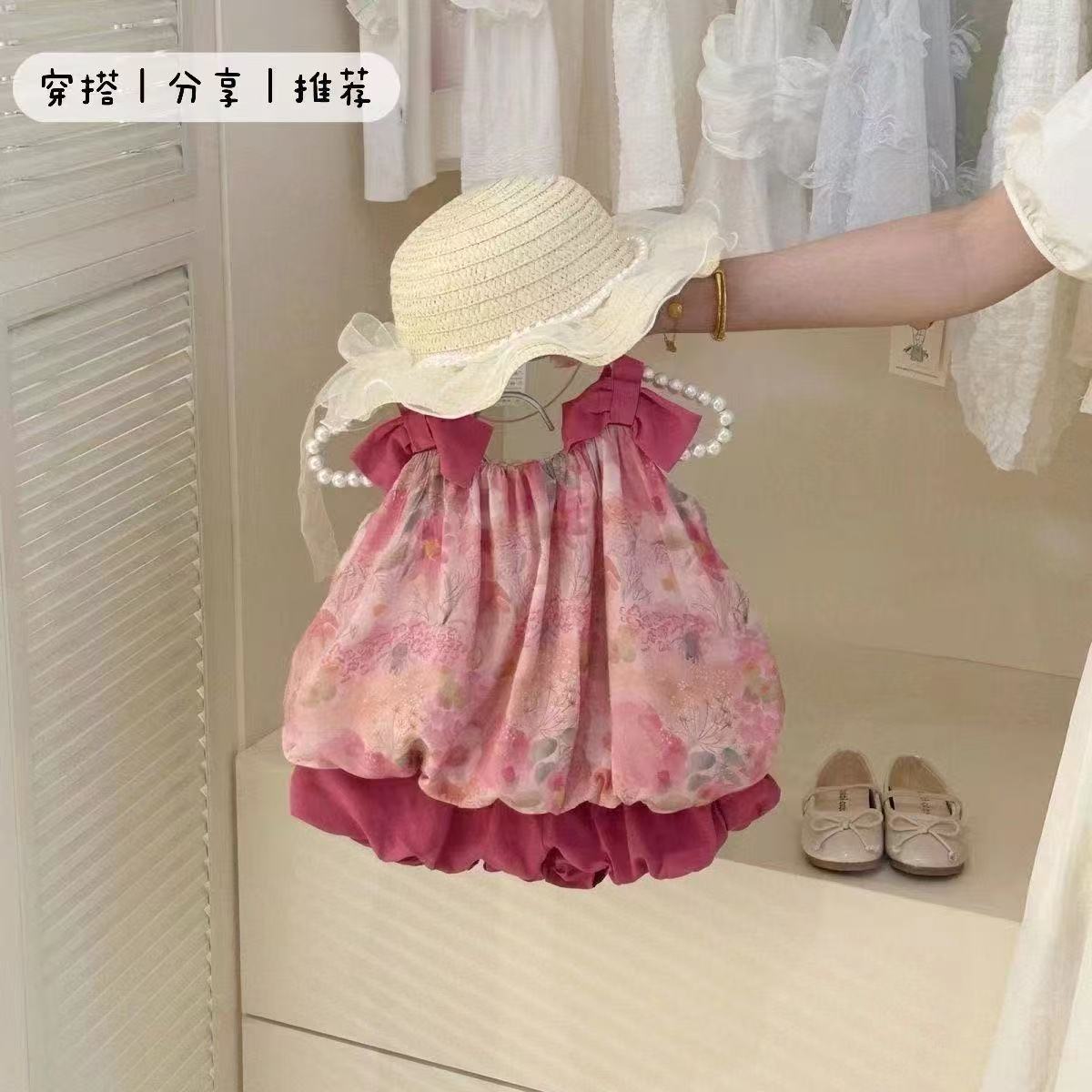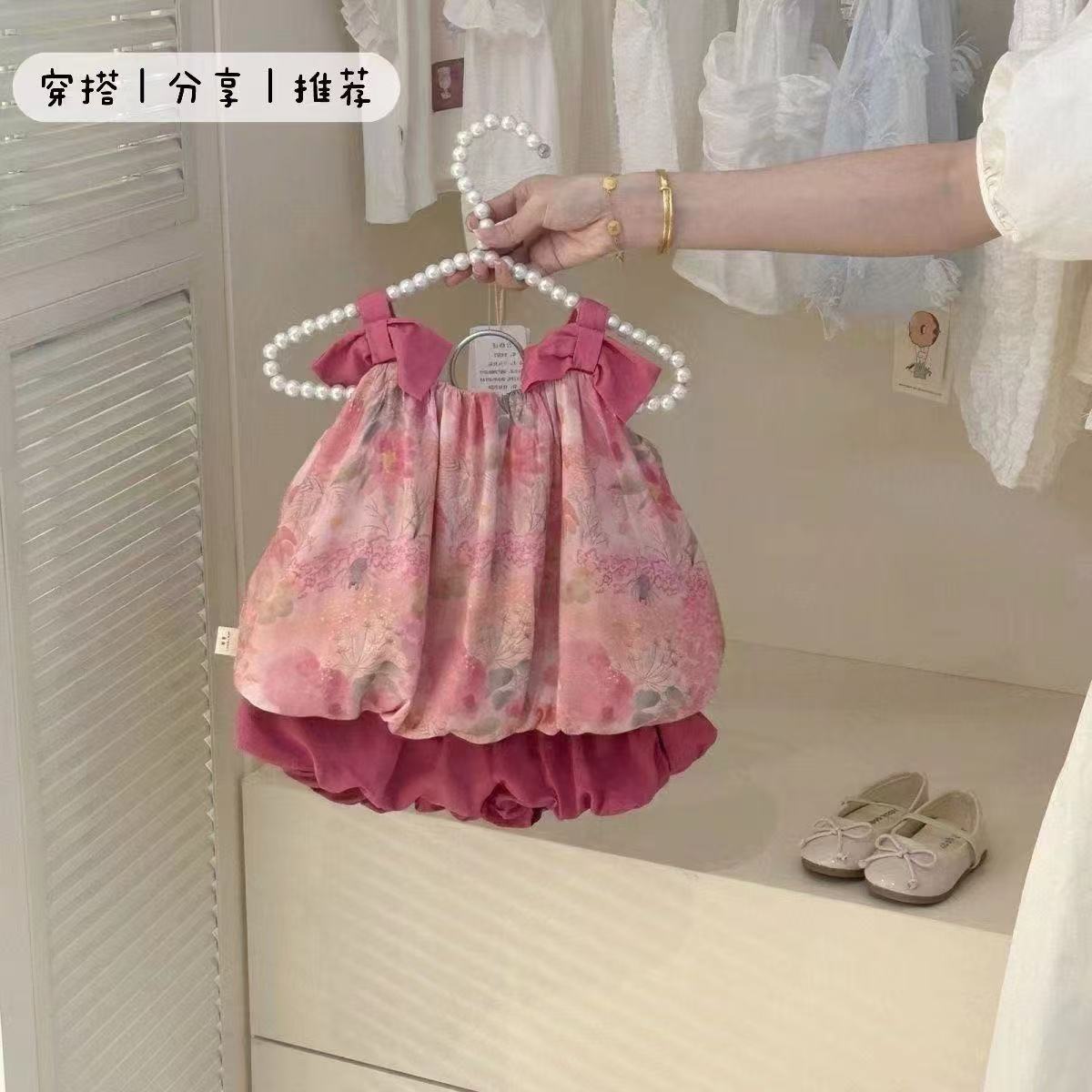 소녀 여름 세트 2025 여름 새로운 달콤한 아기 꽃 활 슬링 버드 반바지 투피스 세트스토어 가기