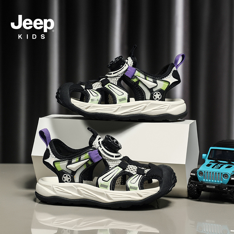 지프 어린이 샌들 2025 여름 새로운 회전 버튼 스포츠 샌들 소년 신발 편안한 경량 소녀 신발