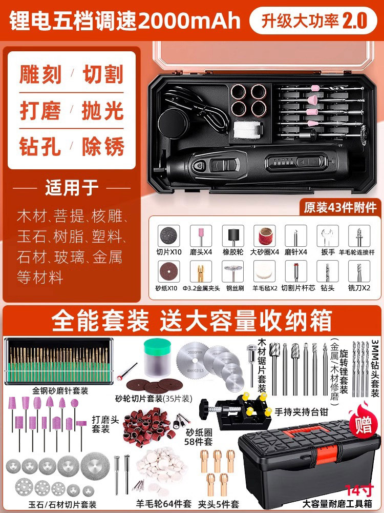 • 리튬 배터리 업그레이드, 5단 속도 조절 [만능 세트] 대용량 공구 상자 포함
