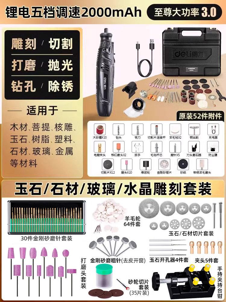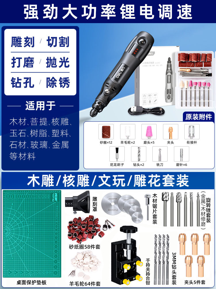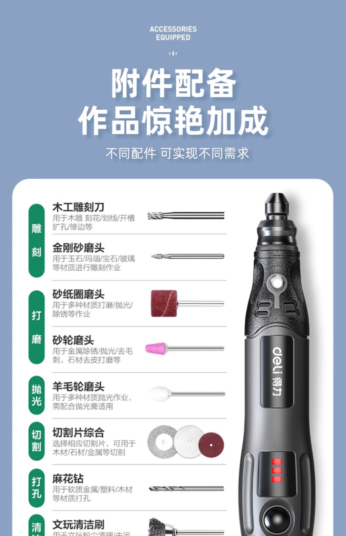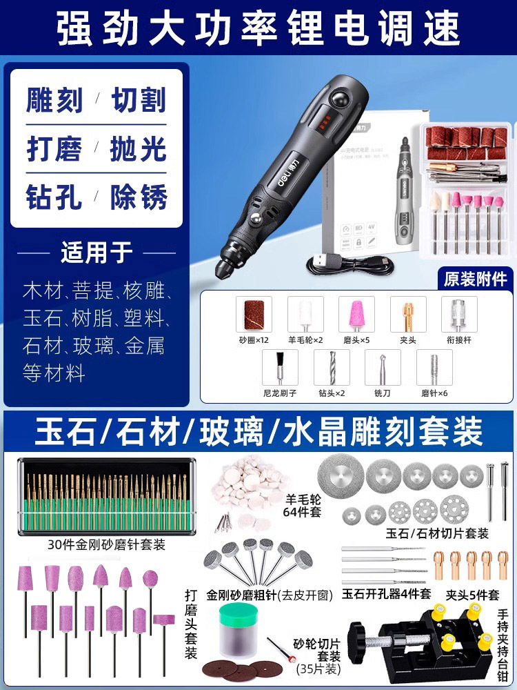 델리 전기 밀 소형 휴대용 폴리싱 아티팩트 우드 조각 옥 절단 전원 도구 미니 전기 드릴