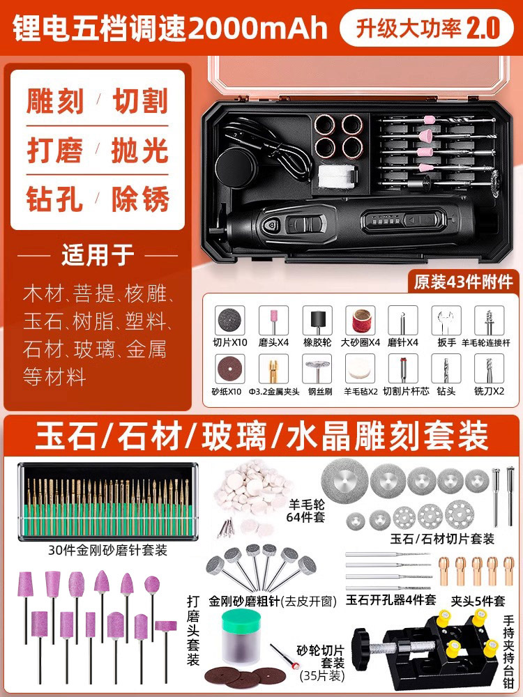 • 리튬 배터리 업그레이드, 5단계 속도 조절 [옥/석재/수정 조각 세트]