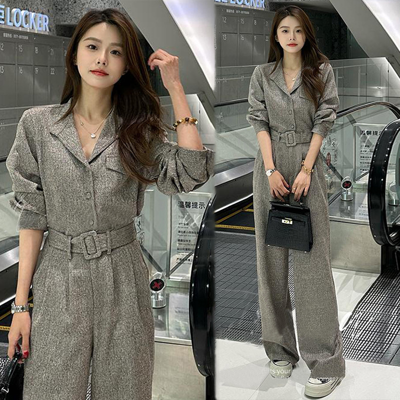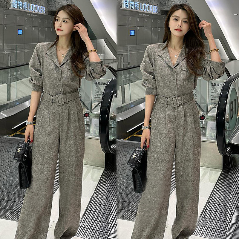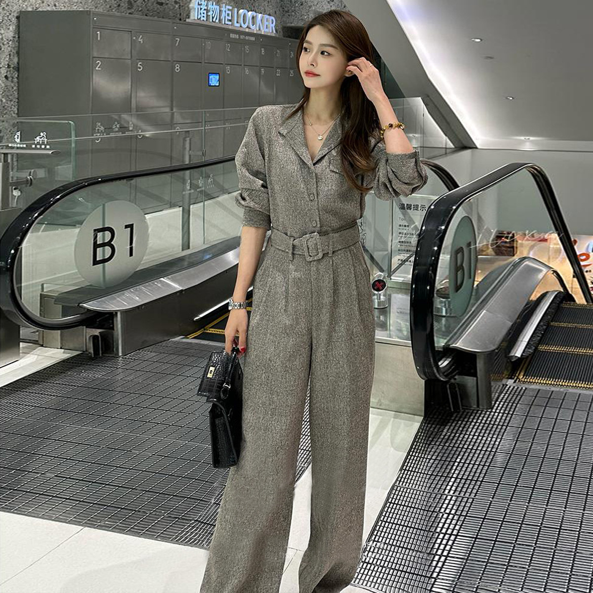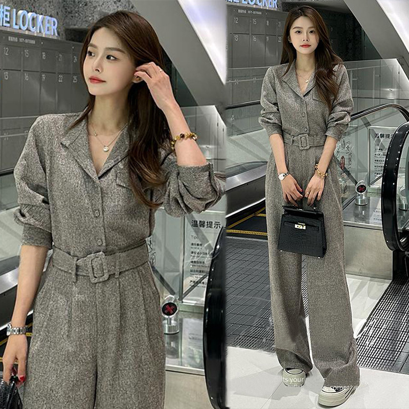 봄 2025 새로운 올 매치 마일 라드 스타일 스트리트 툴링 디자인 센스 원피스 칼라 바지스토어 가기