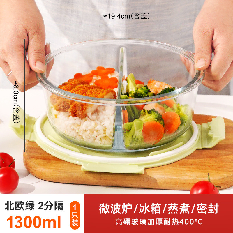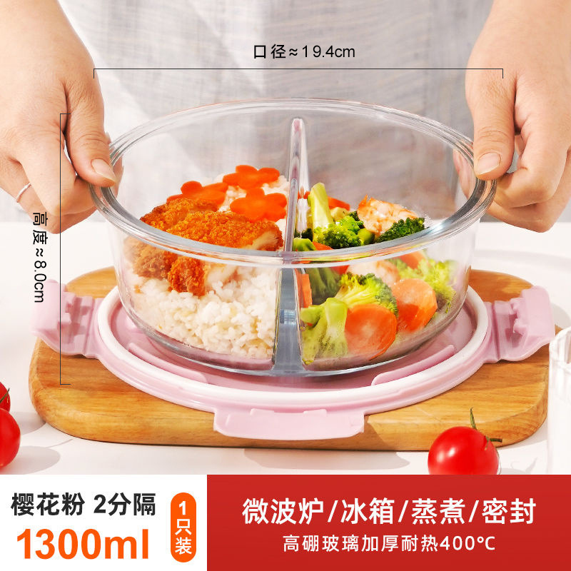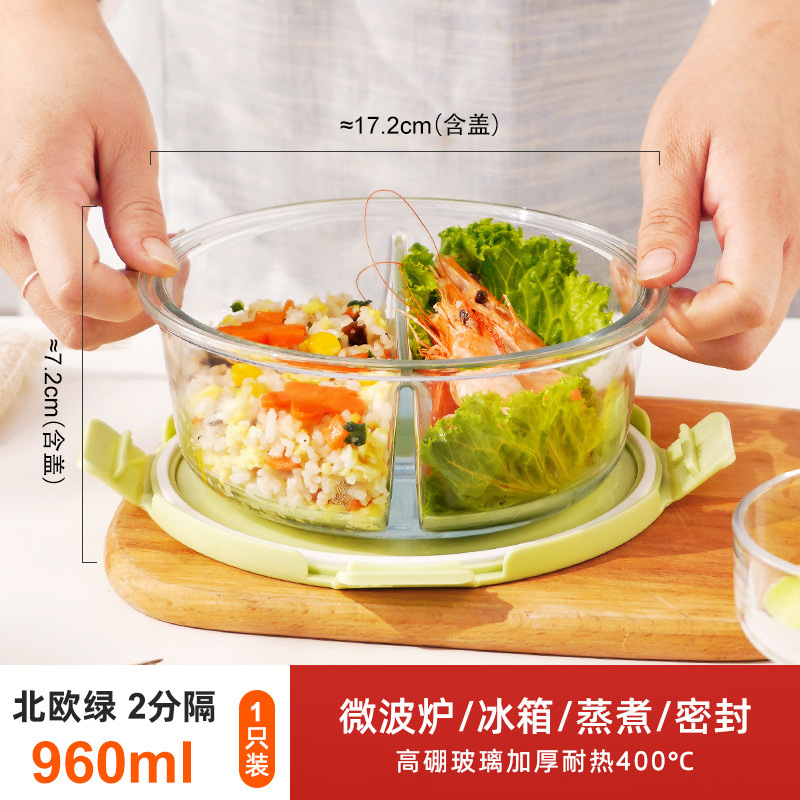 쌀 라운드 도시락 파티션을 가진 사무실 노동자를 위한 유리 도시락 폭열 마이크로파 난방 특수 그릇 작은 수용량스토어 가기