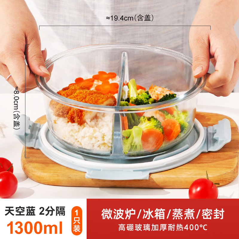 쌀 라운드 도시락 파티션을 가진 사무실 노동자를 위한 유리 도시락 폭열 마이크로파 난방 특수 그릇 작은 수용량