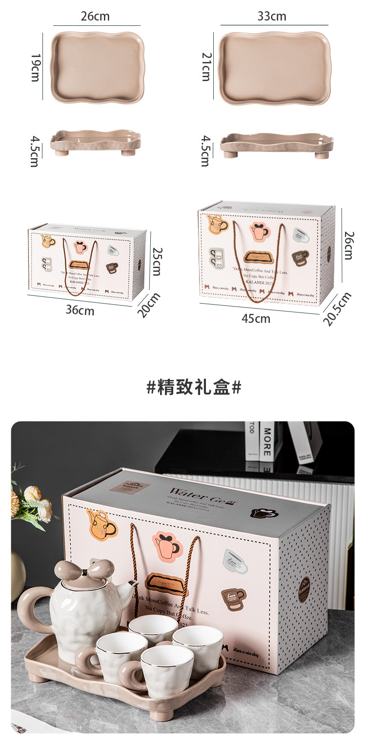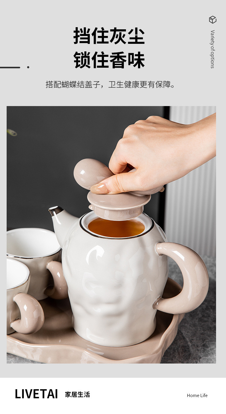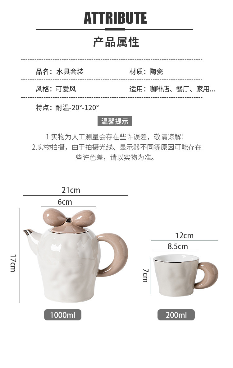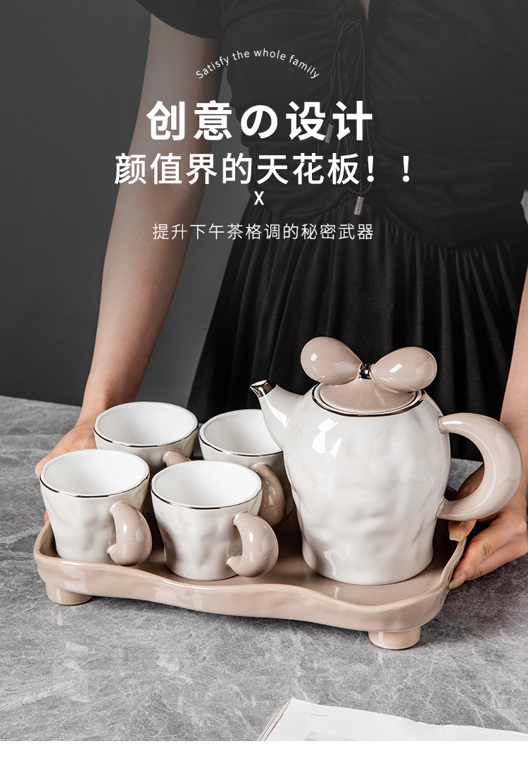茶壶套装ins风蝴蝶结高档创意伴手礼组合礼品轻奢 耐高温陶瓷茶具