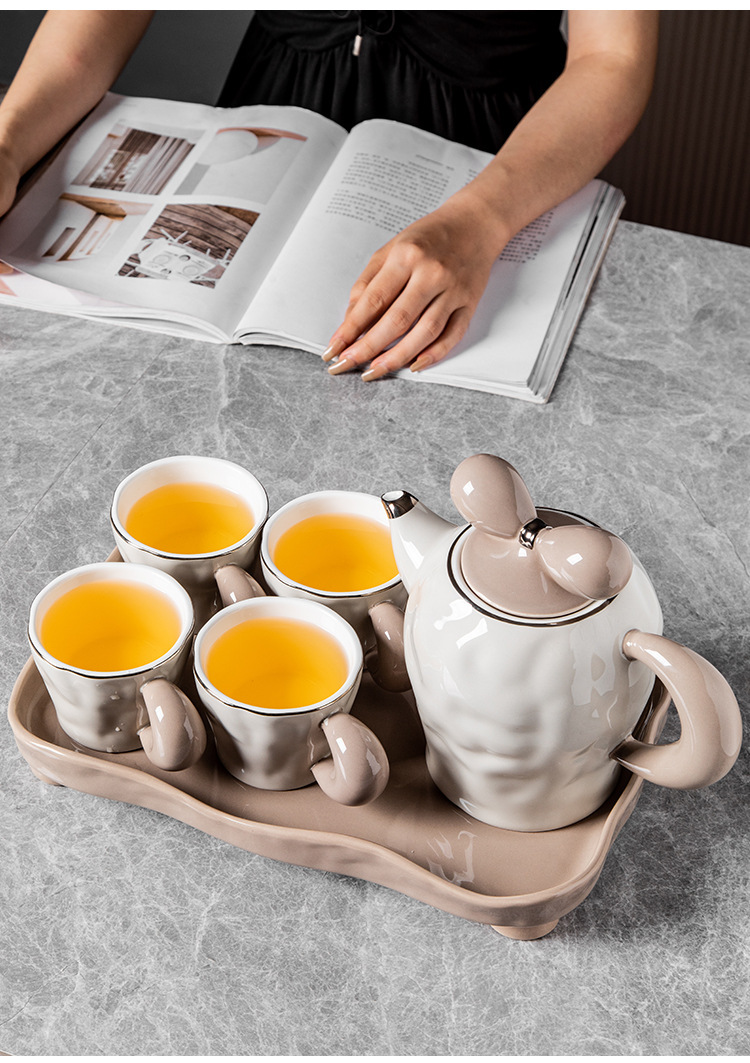 • 手捏银边肤感(一壶四杯一拖盘)