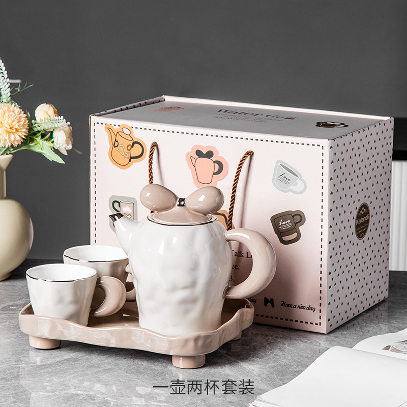 茶壶套装ins风蝴蝶结高档创意伴手礼组合礼品轻奢 耐高温陶瓷茶具스토어 가기