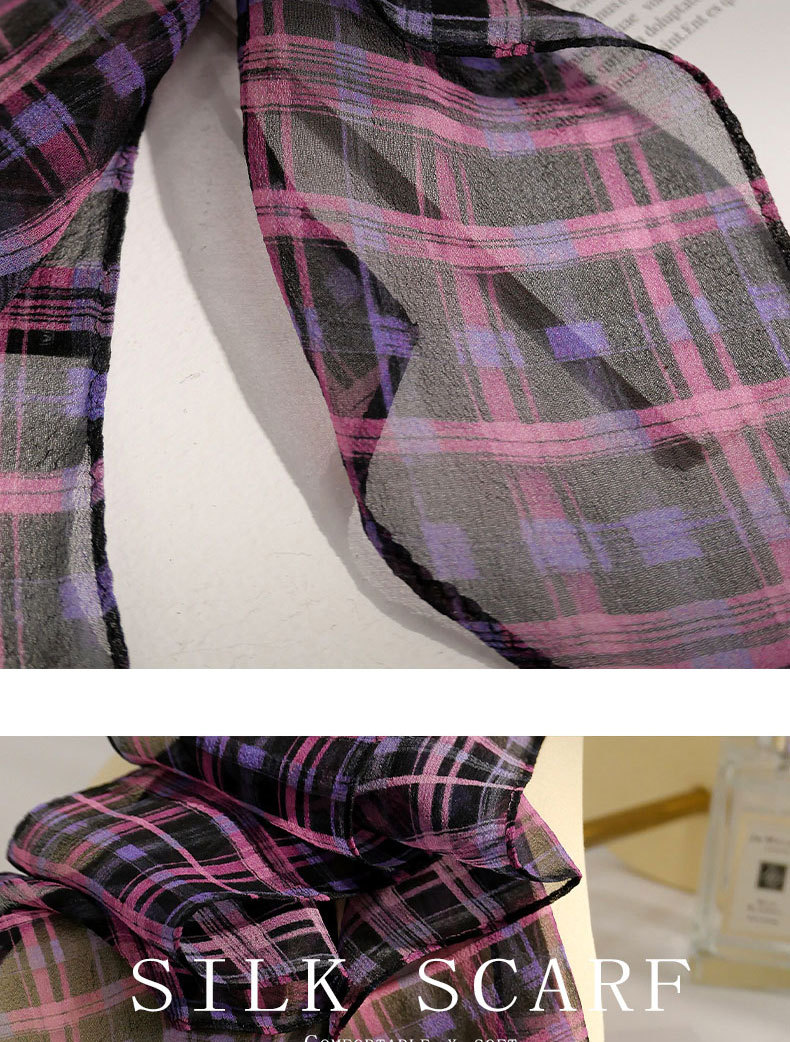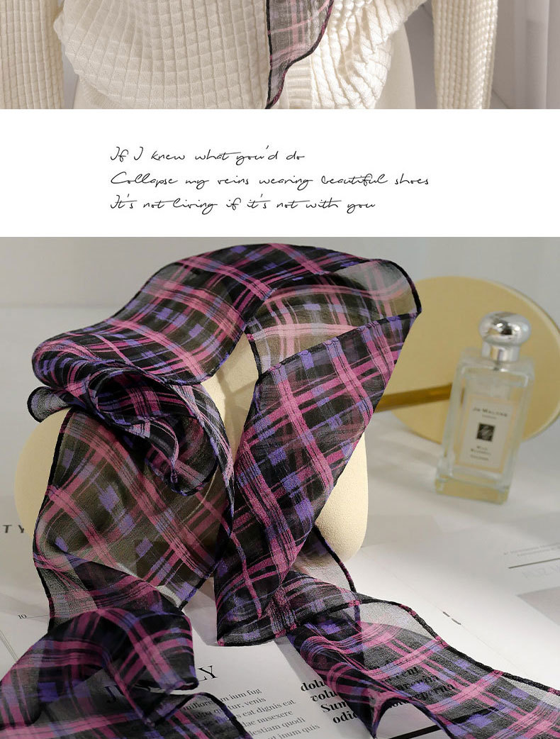 컬러 블록 체크 무늬 100% 실크 스카프 인쇄 긴 스카프 여성의 봄과 여름 장식 헤드 스카프 머리띠