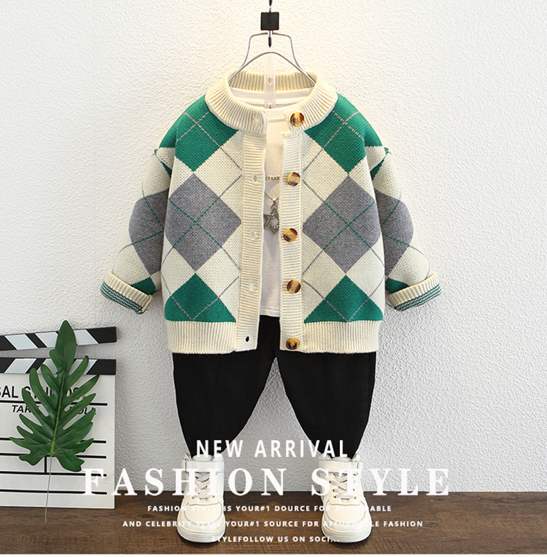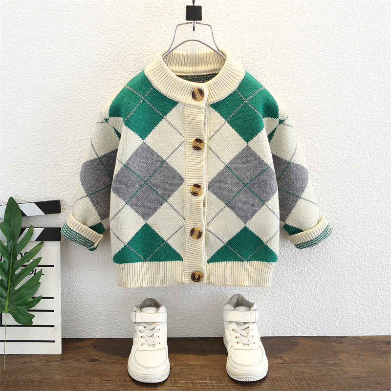 어린 소년 2025 새로운 봄과 가을 니트 스웨터 카디건 재킷 어린이 서양식 소년 아기 봄 패션 소년스토어 가기