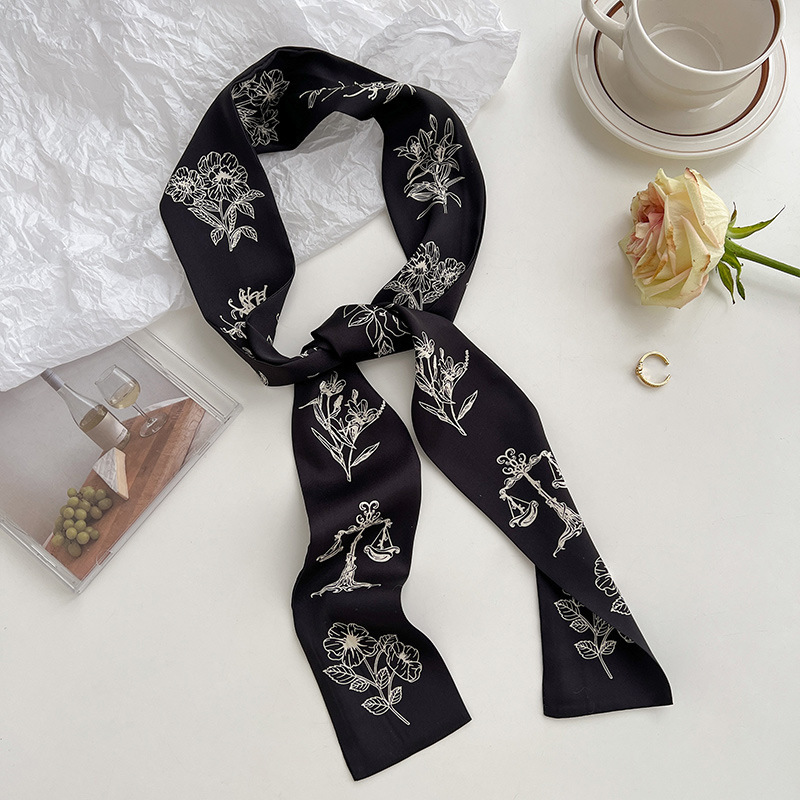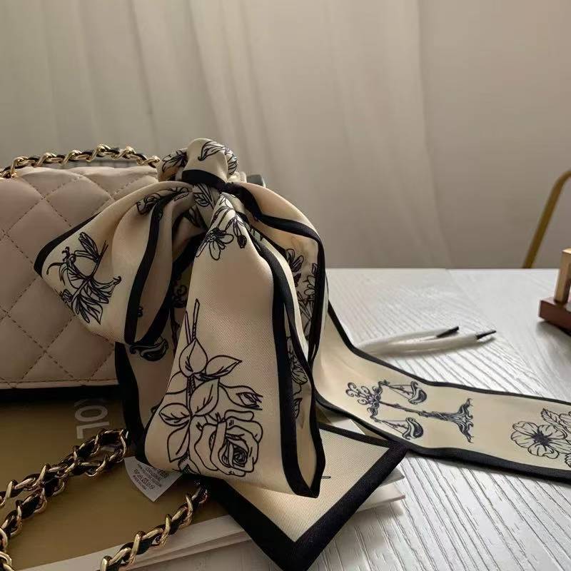 봄과 여름 새로운 로즈 프린트 실크 스카프 빈티지 올 매치 헤어 타이 백 셔츠 스카프 장식 긴 리본