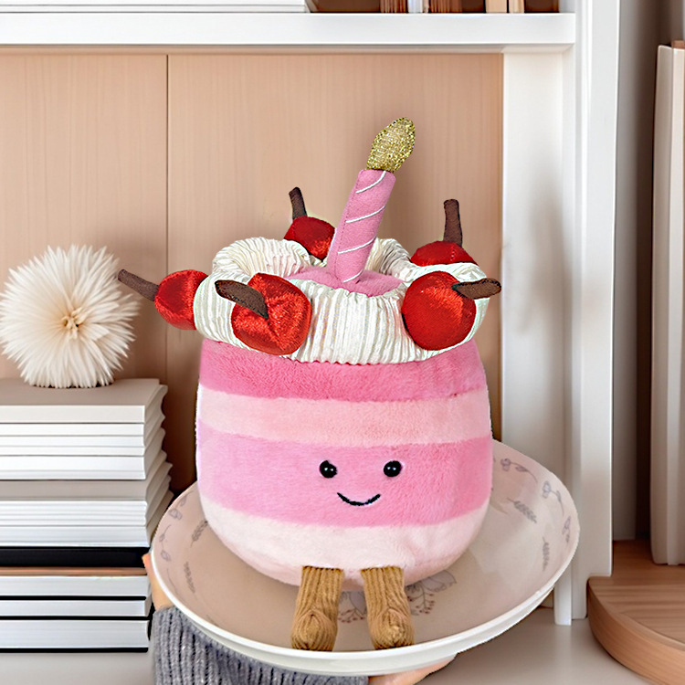 새로운 영국 젤리 캣 케이크 인형 무지개 체리 생일 케이크 인형 생일 봉제 인형 장난감 선물