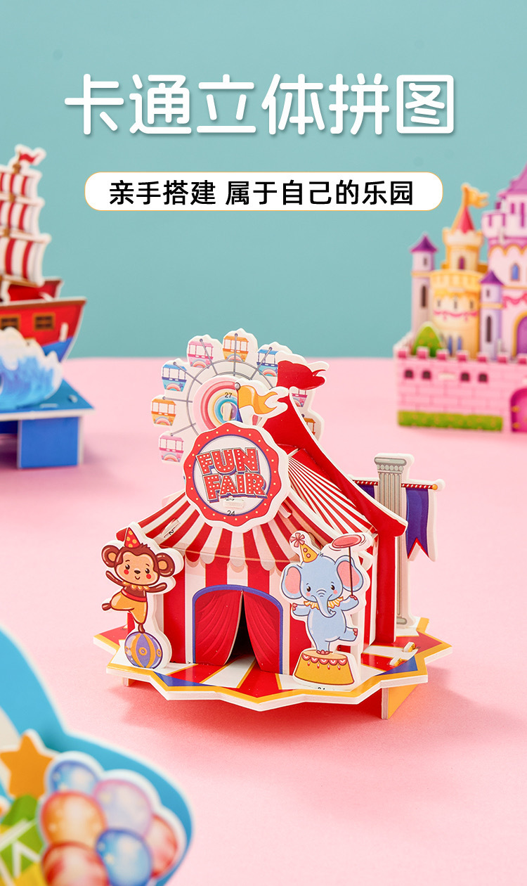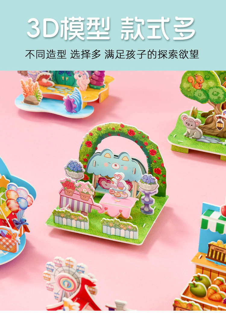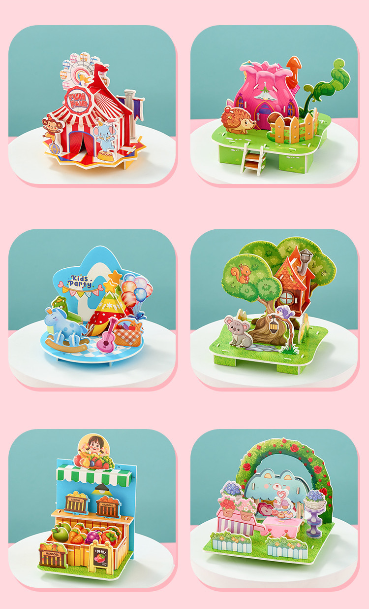 만화 3D 입체 집 퍼즐 어린이 DIY 교육용 유치원 조기 교육용 작은 집 건축 조립 장난감 도매스토어 가기