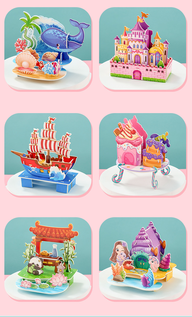 만화 3D 입체 집 퍼즐 어린이 DIY 교육용 유치원 조기 교육용 작은 집 건축 조립 장난감 도매