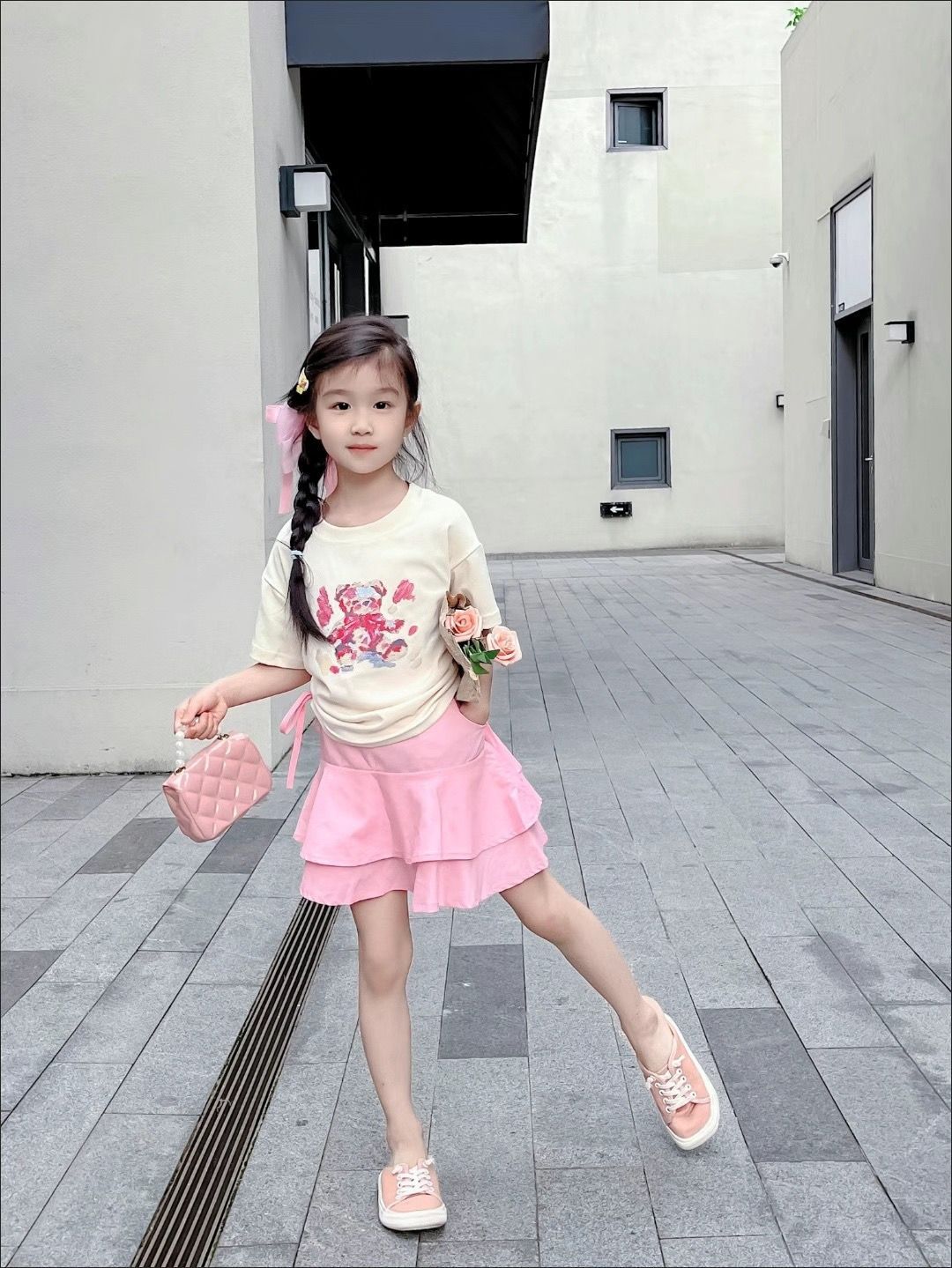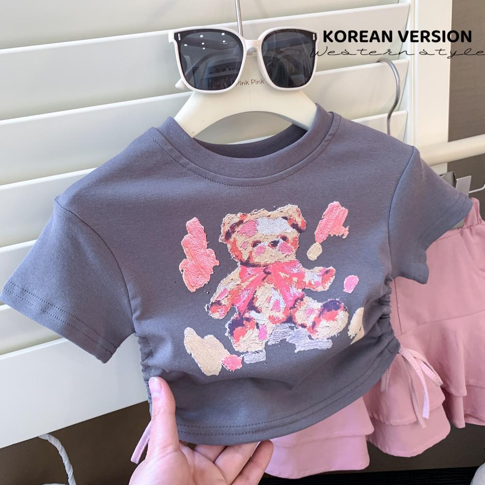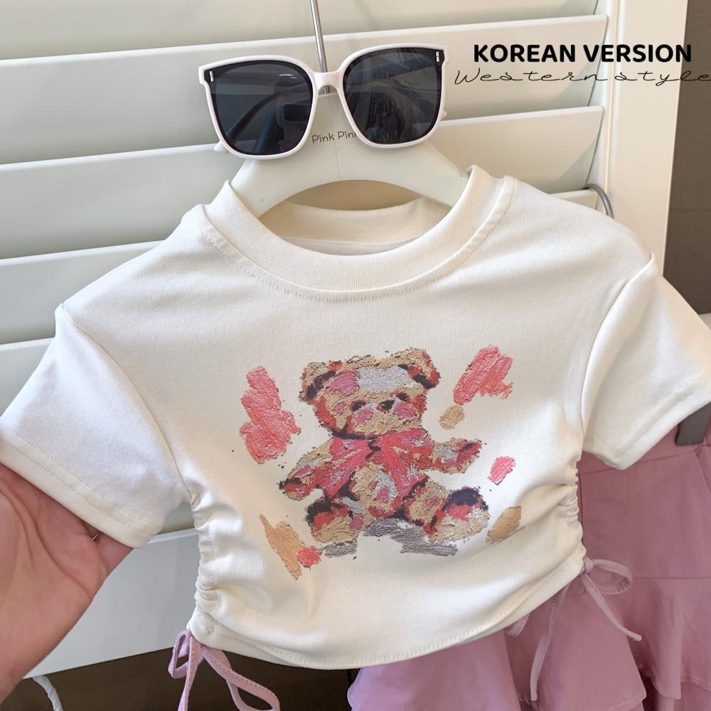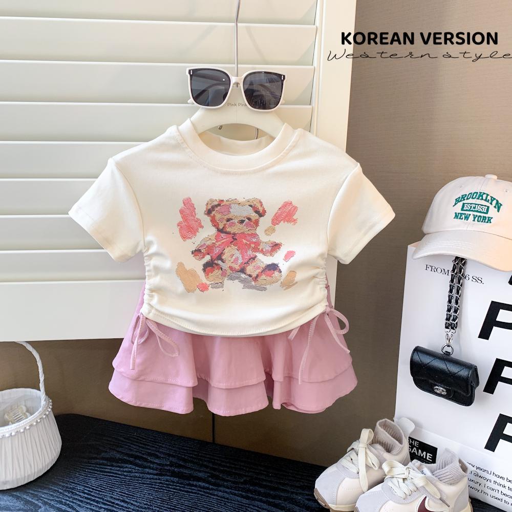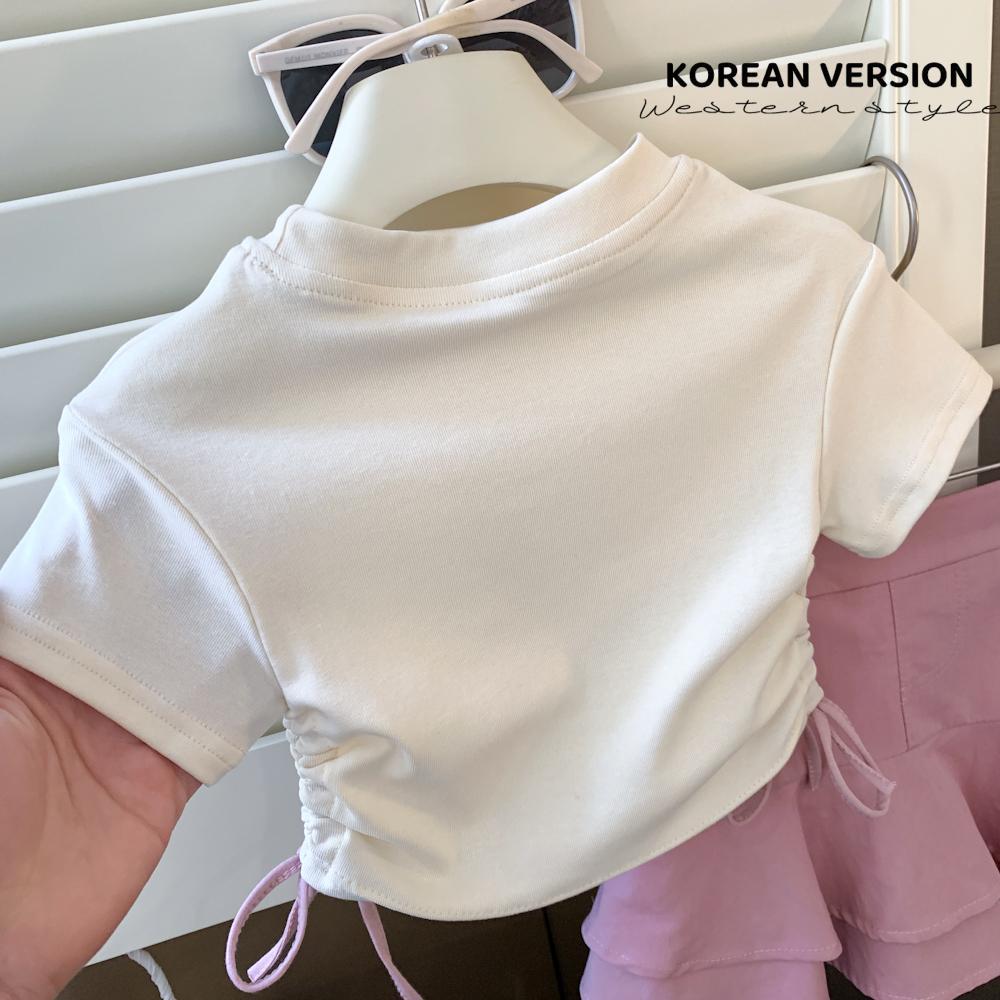한국 스타일 소녀의 귀여운 티셔츠 세트 여름 새 스타일 드로우 스트링 탑 한국 스타일 달콤하고 매운 스타일 투피스 유행 스커트스토어 가기