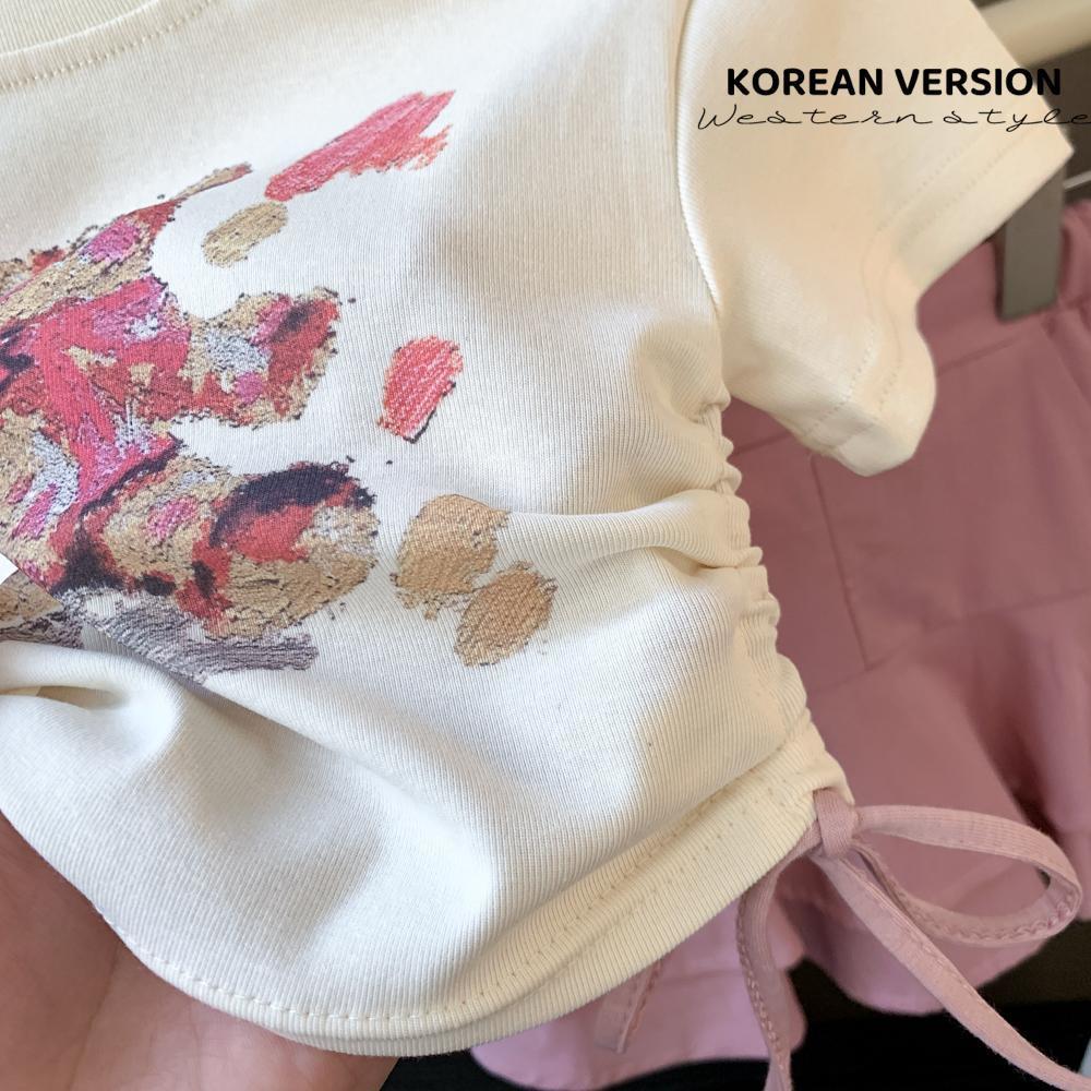 한국 스타일 소녀의 귀여운 티셔츠 세트 여름 새 스타일 드로우 스트링 탑 한국 스타일 달콤하고 매운 스타일 투피스 유행 스커트