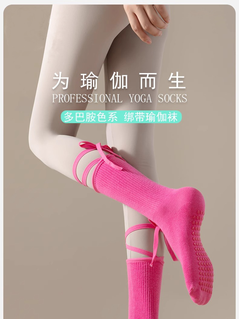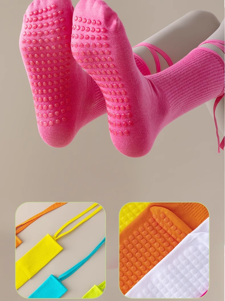 발 미끄럼 방지 요가 양말 필라테스 스포츠 피트니스 댄스 댄스 운동 다채로운 중간 긴 튜브 스트랩 올 매치 양말스토어 가기