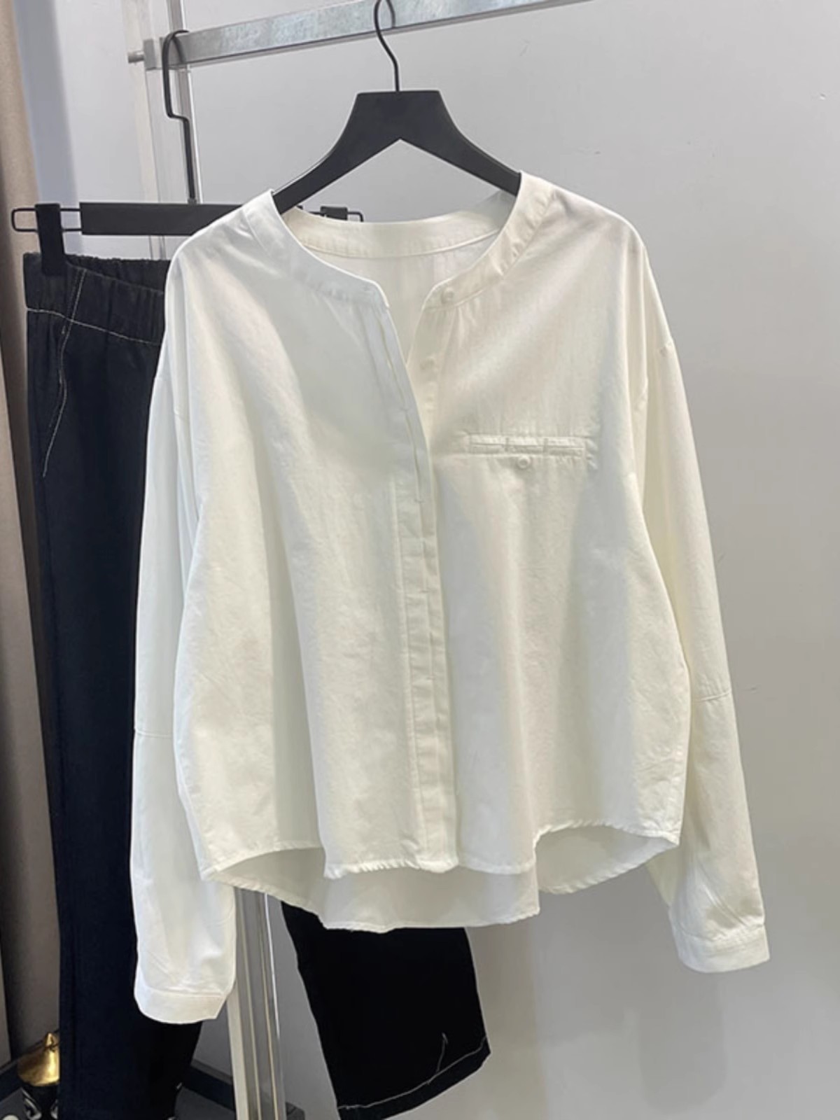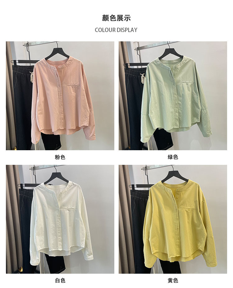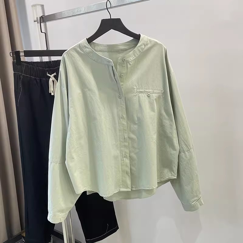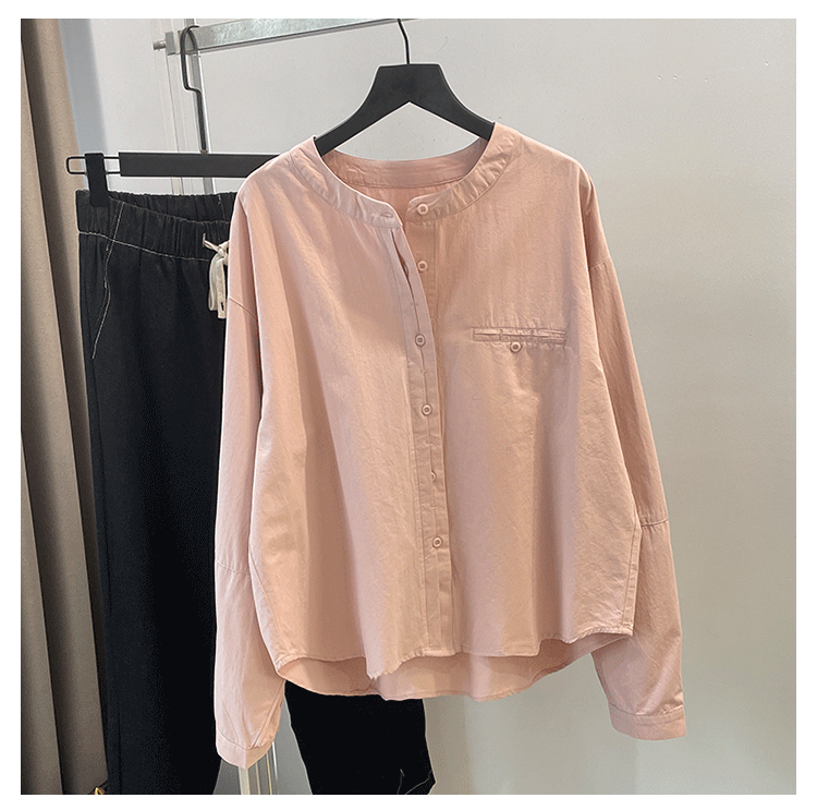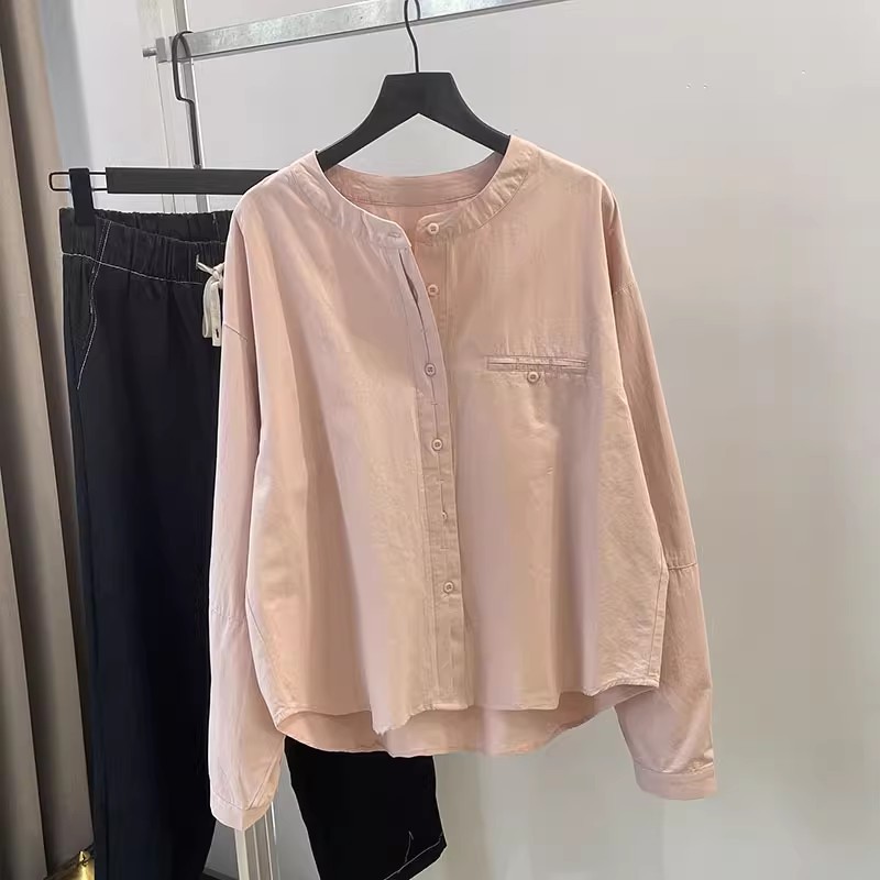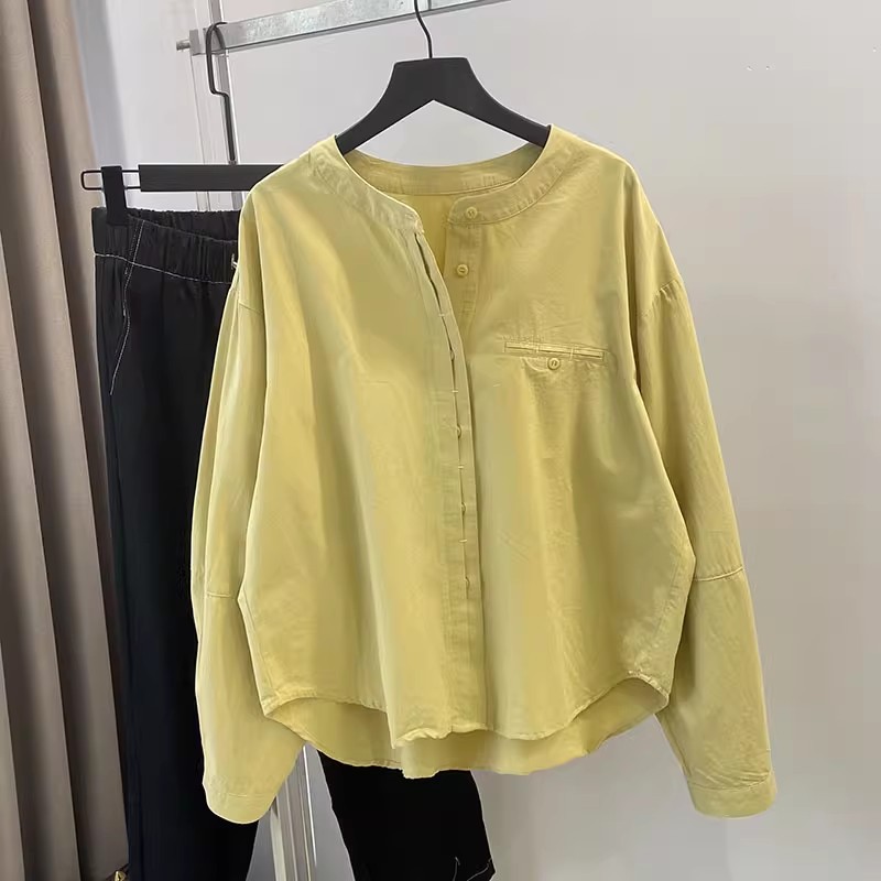 프랑스 크루 넥 셔츠 여성용 긴팔 2025 새로운 스타일 캐주얼 연령 감소 슬리밍 솔리드 컬러 인형 셔츠 셔츠스토어 가기
