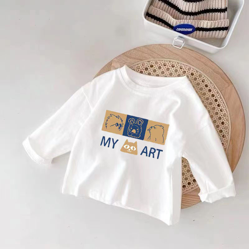 100 순수 코튼 어린이 긴팔 기본 셔츠 봄과 가을 새로운 인쇄 서양식 캐주얼 티셔츠 유행 최고 소년 소녀